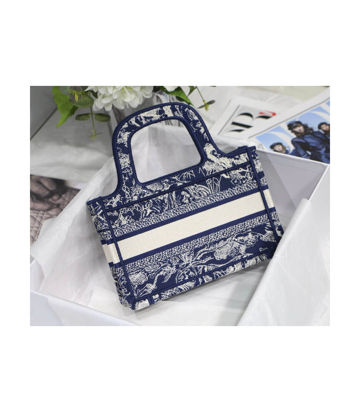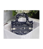 The Dior Book Tote, as imagined by Maria Grazia Chiuri, has become an essential item of the Dior aesthetic. The miniature?silhouette is fully embroidered with the fuchsia Toile de Jouy Reverse motif, a new take on the iconic House pattern with a play on reversed colors. A prime example of the House’s savoir-faire, the bag may be carried by hand and can be paired with other Toile de Jouy Reverse creations.