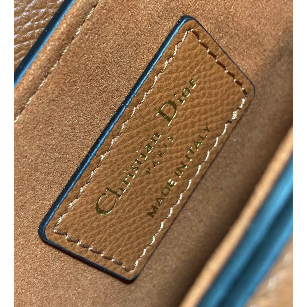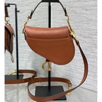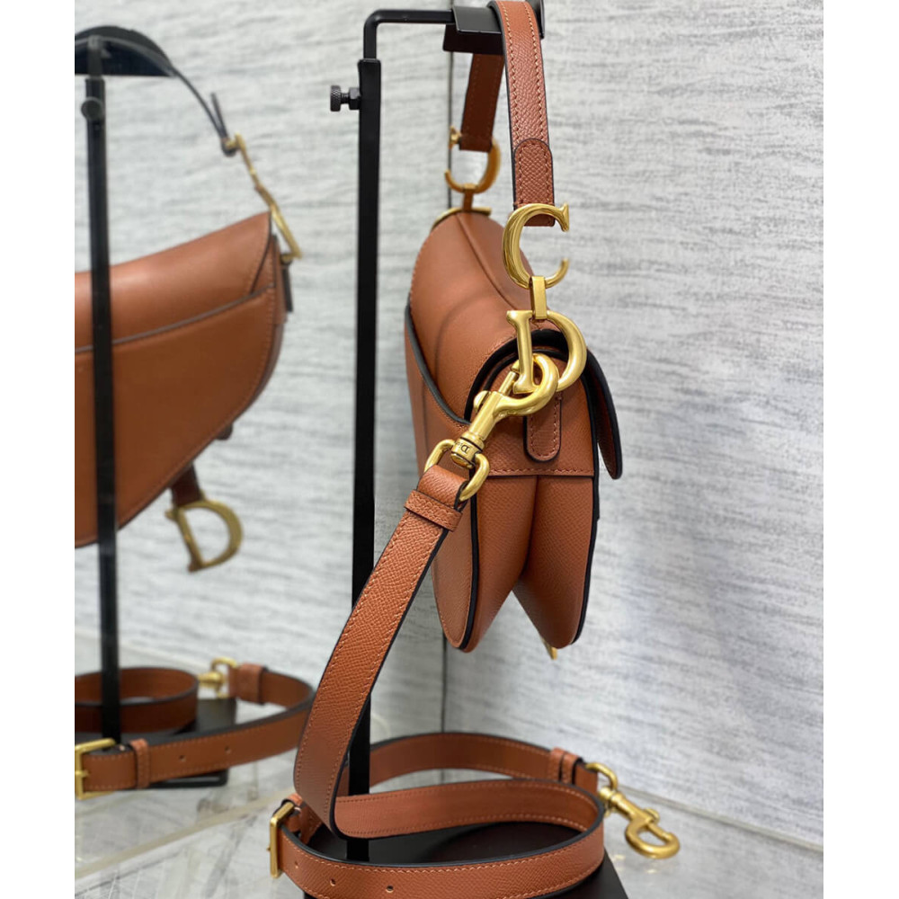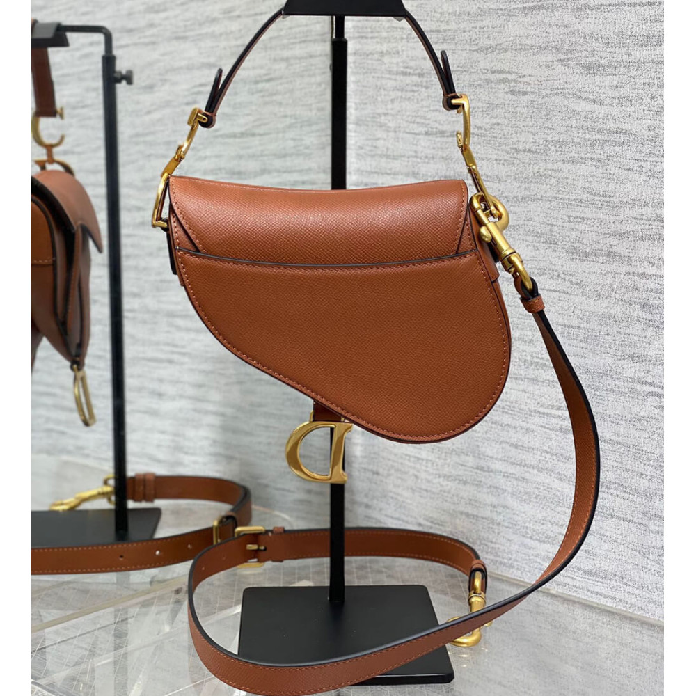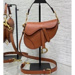 Maria Grazia Chiuri brings a fresh update to the iconic Saddle bag. Crafted in latte grained calfskin, the legendary design features a Saddle flap with a D stirrup clasp on a magnetic strap, as well as an antique gold-finish metal CD signature on either side of the strap. Equipped with a thin, adjustable and removable shoulder strap, the miniature Saddle bag may be carried by hand, worn over the shoulder or crossbody.