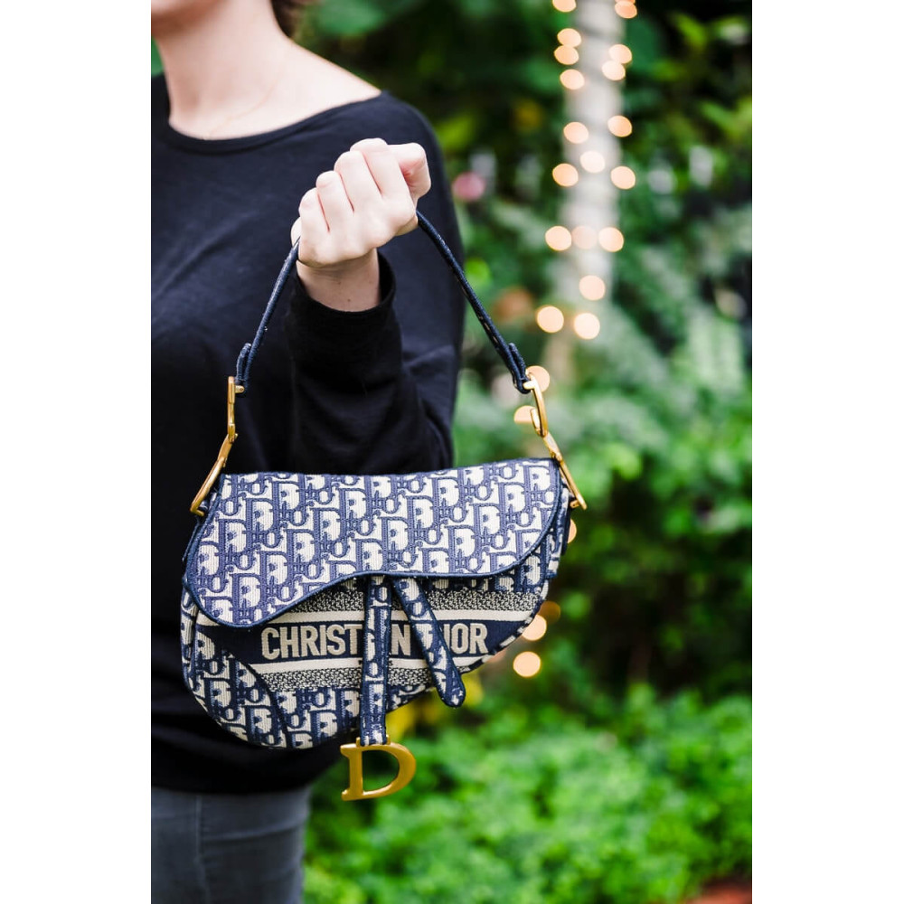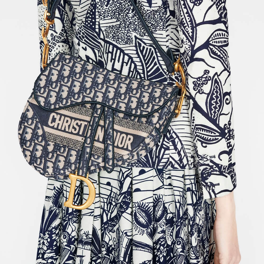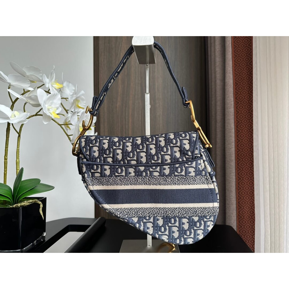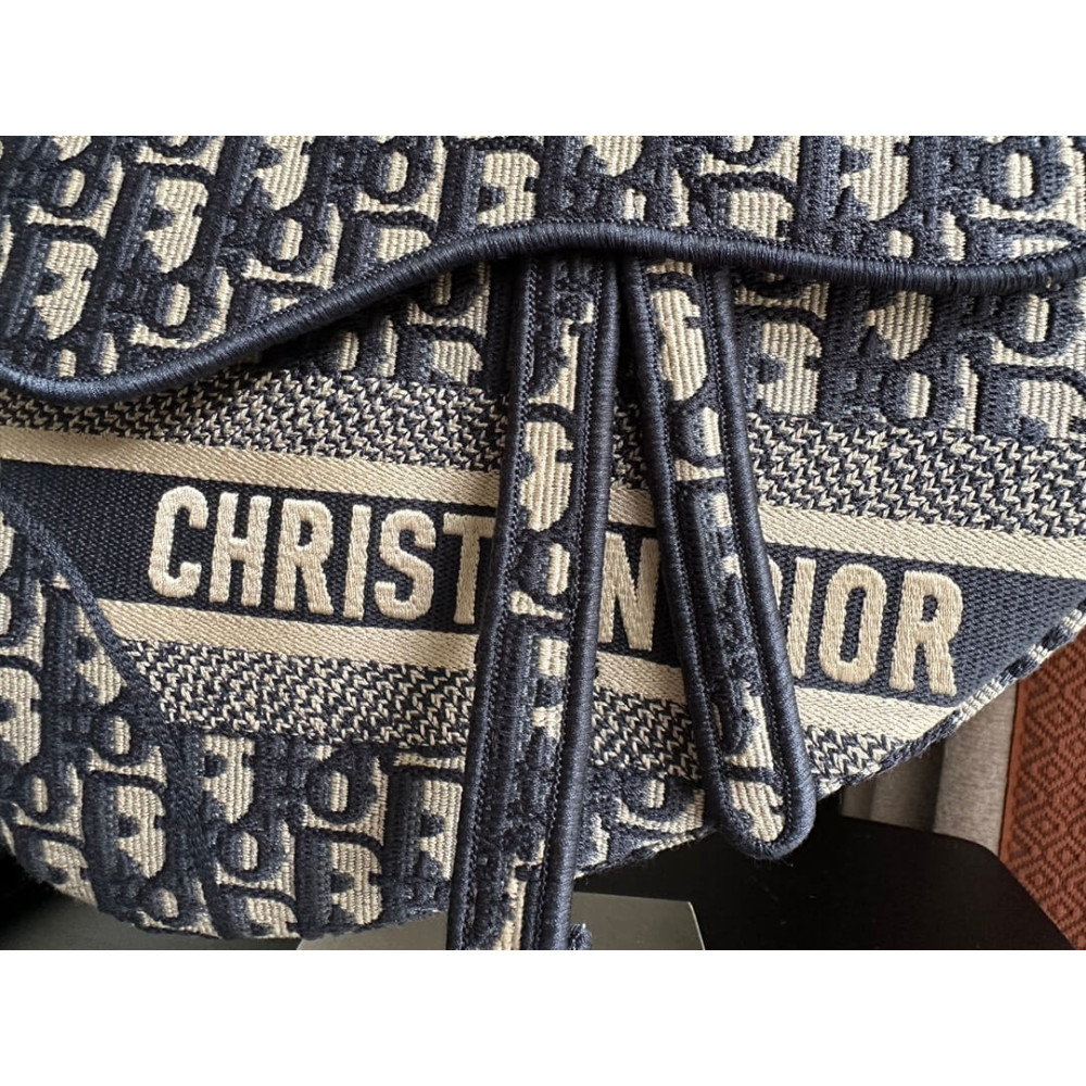 • Dior Saddle Bag Blue Oblique Embroidery