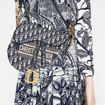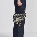 Maria Grazia Chiuri brings a fresh update to the iconic Saddle bag. The design is fully embroidered with the House’s hallmark blue Dior Oblique motif. The legendary style features a Saddle flap and a D stirrup clasp on a magnetic pull, as well as an antique gold-finish metal CD signature on each side of the handle. The bag can be carried by hand or worn over the shoulder and may be customized with different shoulder straps.
