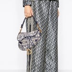 Maria Grazia Chiuri brings a fresh update to the iconic Saddle bag. The design is fully embroidered with the hallmark blue Toile de Jouy motif, further enhanced by a ‘CHRISTIAN DIOR’ signature on the front. The legendary design features a Saddle flap with a magnetic ‘D’ stirrup clasp and boasts an antique gold-finish metal ‘CD’ signature on each side of the handle. The bag can be customized with different shoulder straps and may be coordinated with the season’s other Toile de Jouy creations.