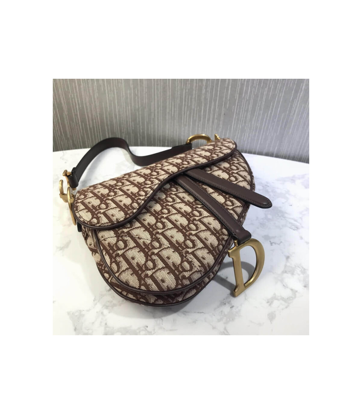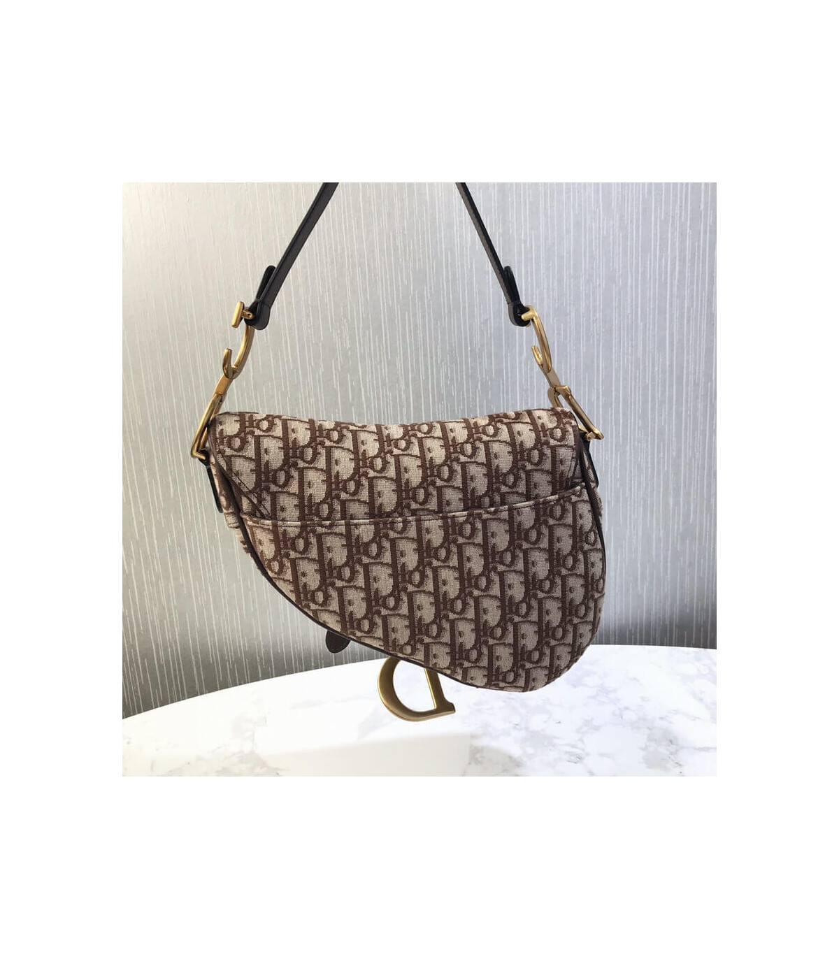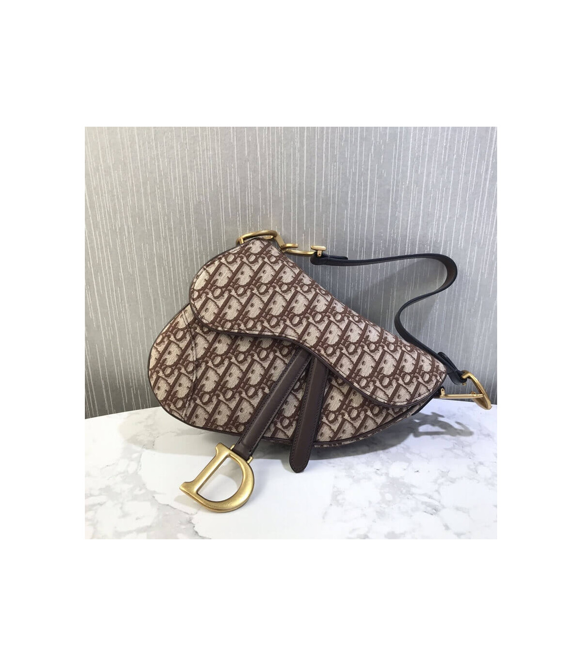 The iconic Saddle bag has been reinvented by Maria Grazia Chiuri. Featuring a Saddle flap with a magnetic ‘D’ stirrup clasp, it features a ‘CD’ signature on each side of the handle. The blue Dior Oblique jacquard is embellished with antique gold-finish metal hardware. The Saddle bag may be carried by hand or worn over the shoulder and can be customized with different shoulder straps.