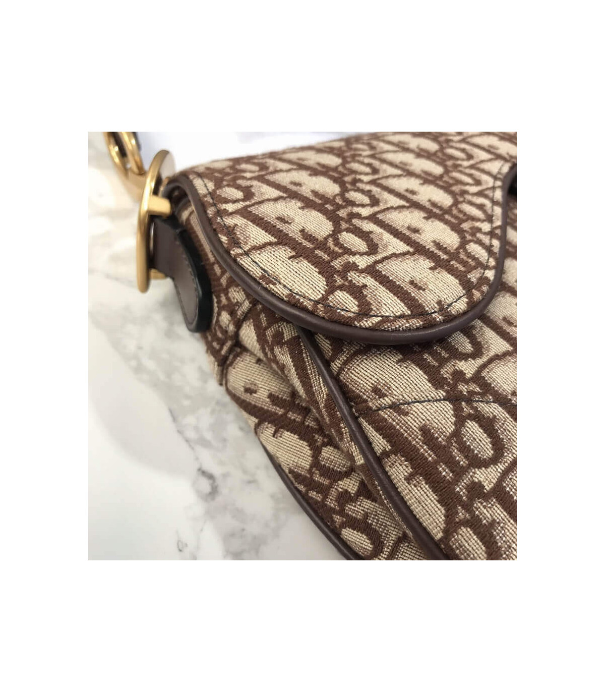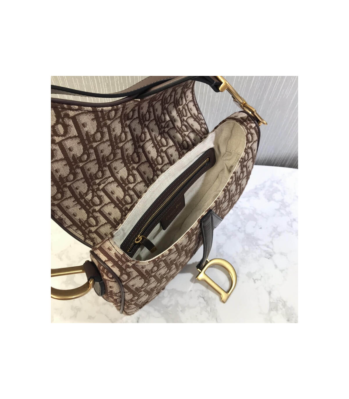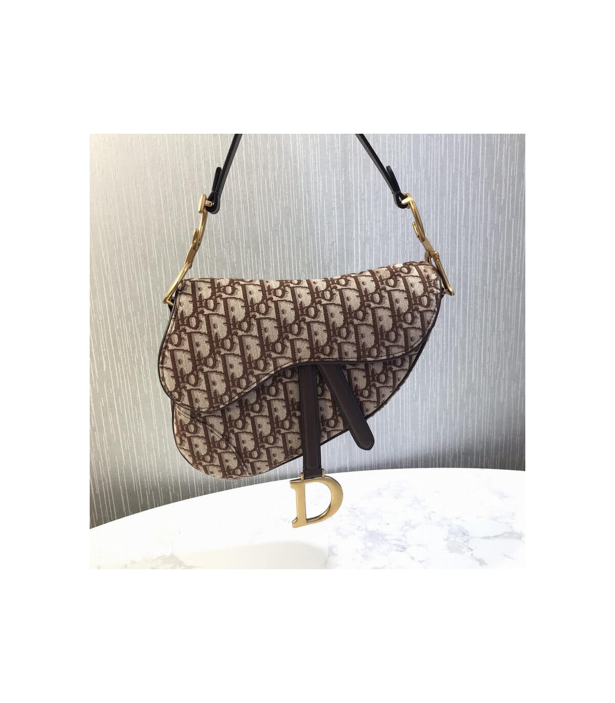 The iconic Saddle bag has been reinvented by Maria Grazia Chiuri. Featuring a Saddle flap with a magnetic ‘D’ stirrup clasp, it features a ‘CD’ signature on each side of the handle. The blue Dior Oblique jacquard is embellished with antique gold-finish metal hardware. The Saddle bag may be carried by hand or worn over the shoulder and can be customized with different shoulder straps.