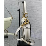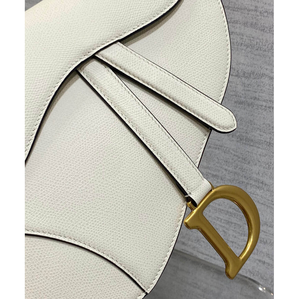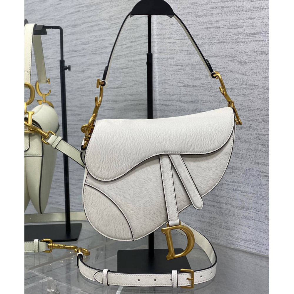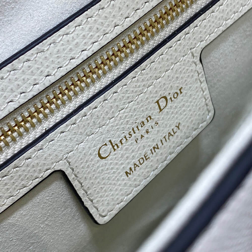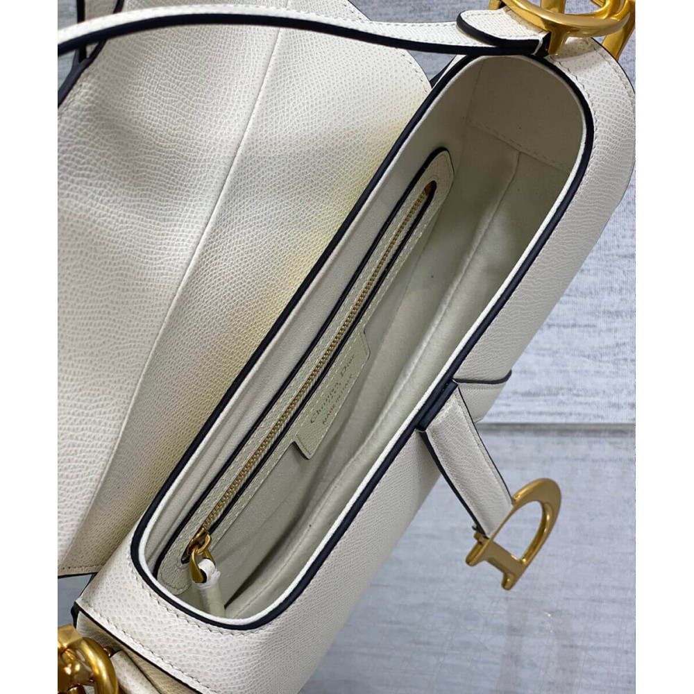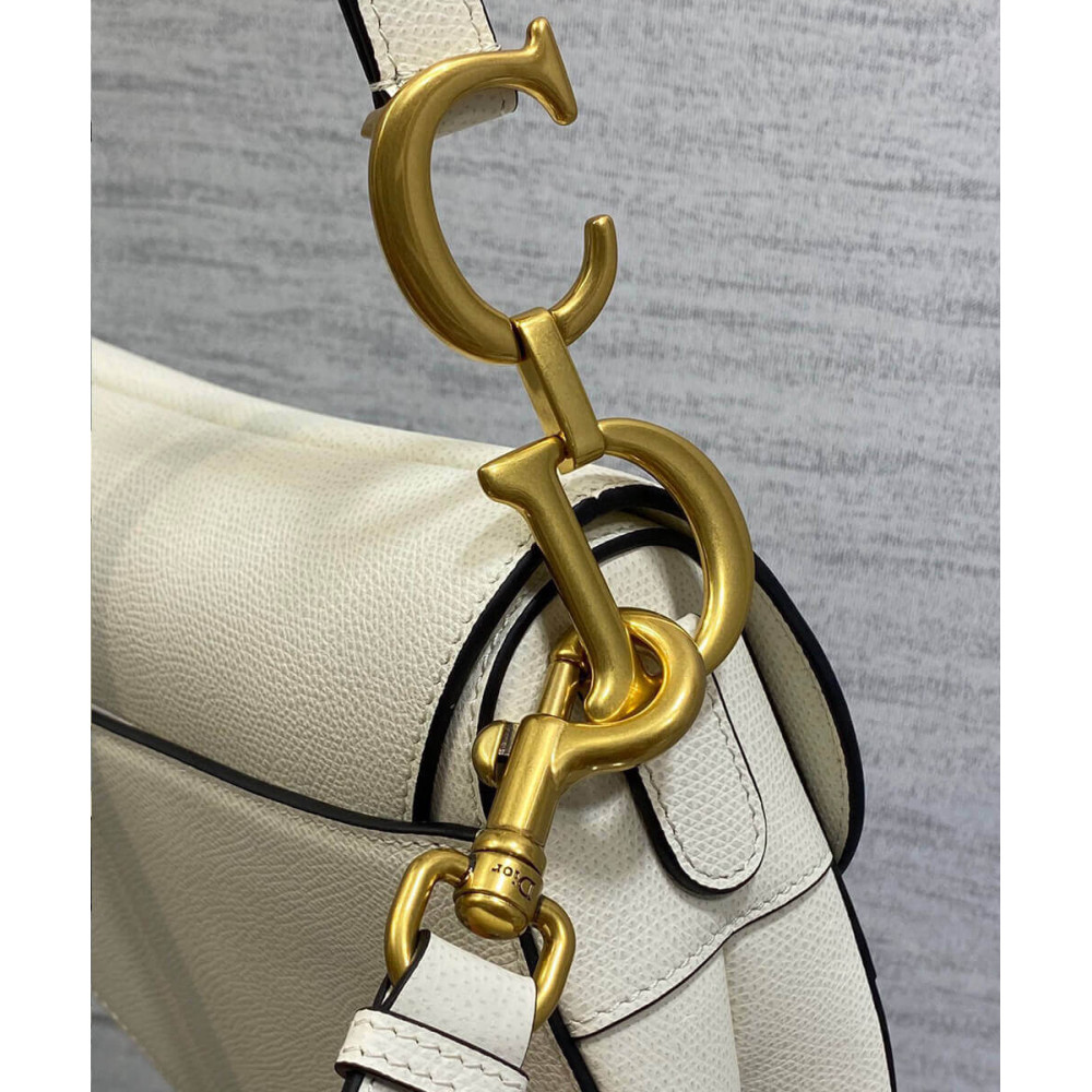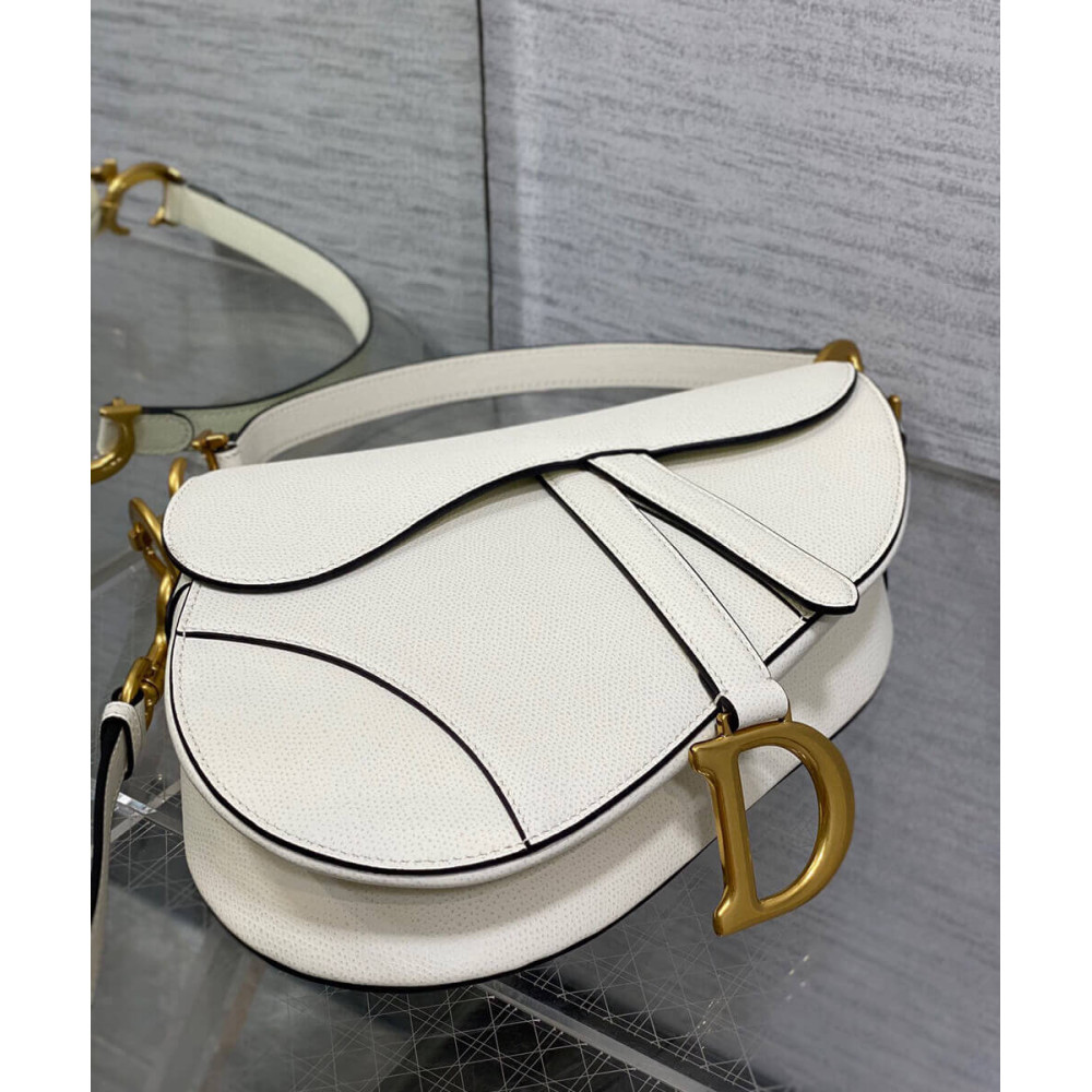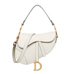 Maria Grazia Chiuri brings a fresh update to the iconic Saddle bag. Crafted in latte grained calfskin, the legendary design features a Saddle flap with a D stirrup clasp on a magnetic strap, as well as an antique gold-finish metal CD signature on either side of the strap. Equipped with a thin, adjustable and removable shoulder strap, the miniature Saddle bag may be carried by hand, worn over the shoulder or crossbody.