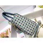 Lady Dior Mini Azure Blue Honeycomb Embroidery Bag With Two-Tone Thread And Rhinestones