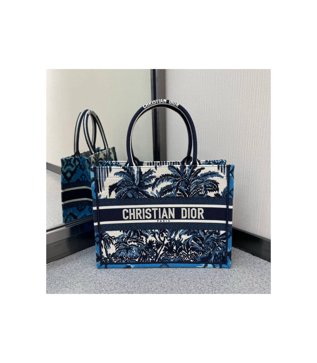 Christian Dior Small Book Tote in Blue Palms Embroidery