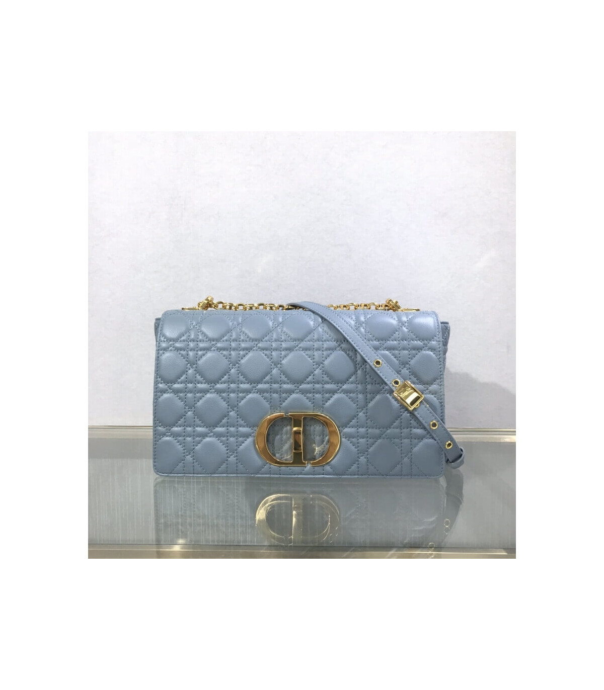 Dior Large Caro Bag Cloud Blue Supple Cannage Calfskin