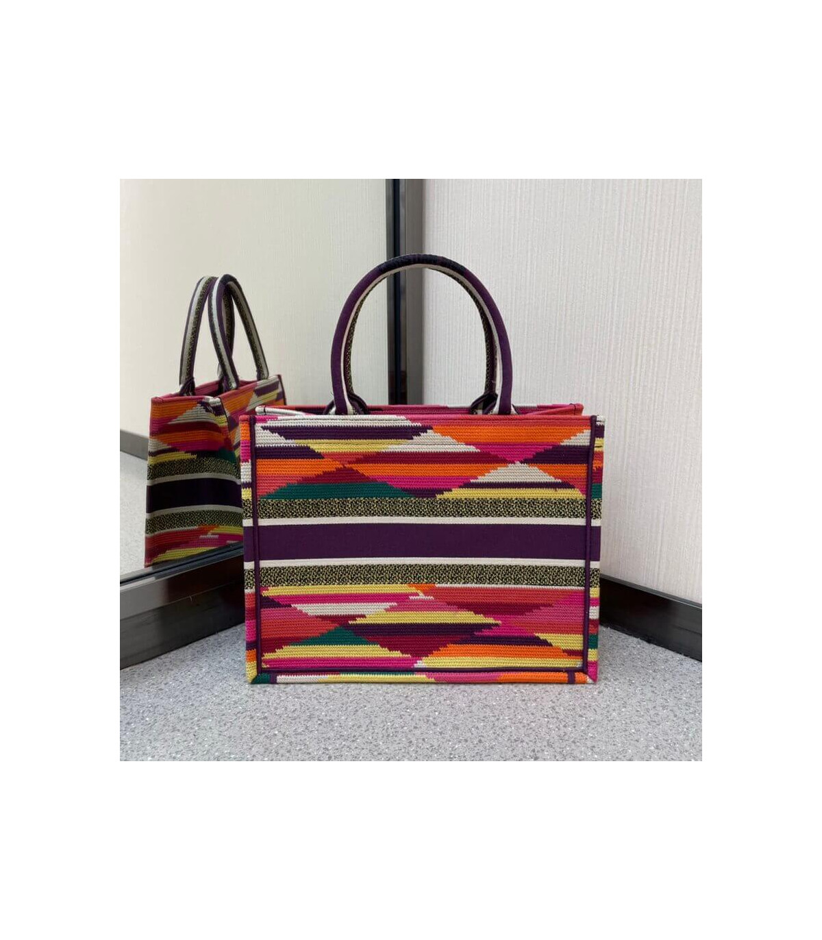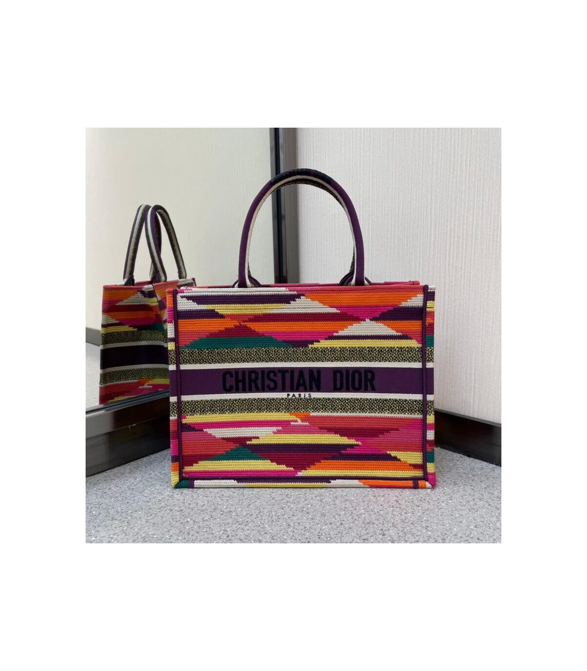 Christian Dior Small Book Tote Multicolor Stripes Embroidery