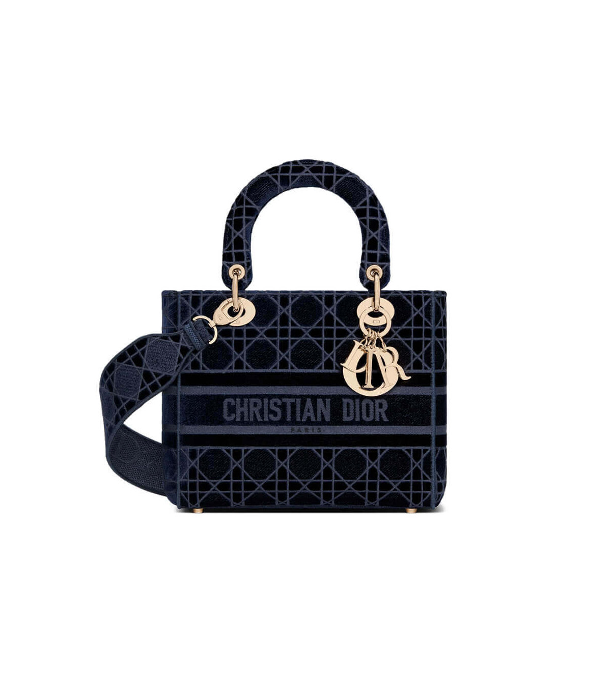 Dior Medium Lady D-Lite Bag Blue Cannage Embroidered Velvet
