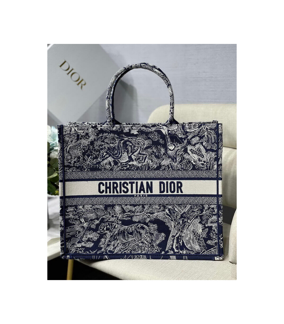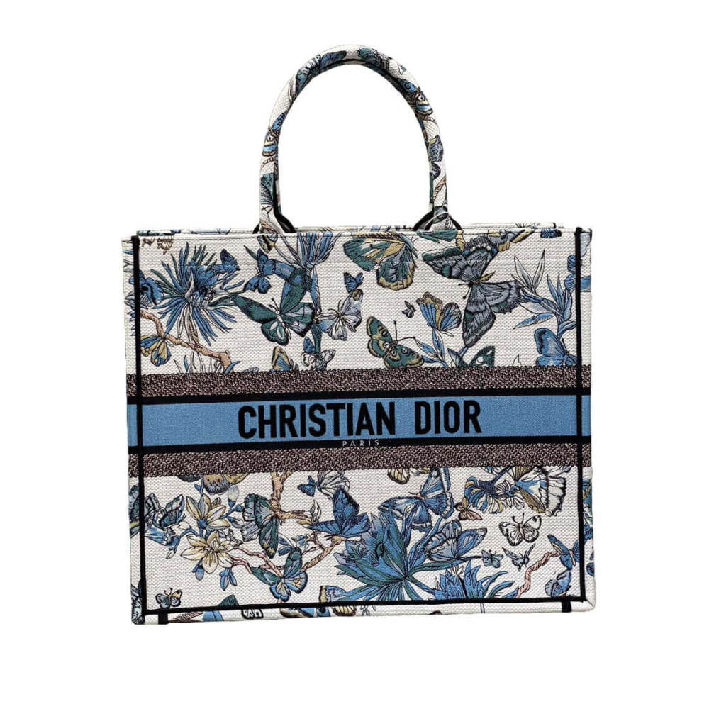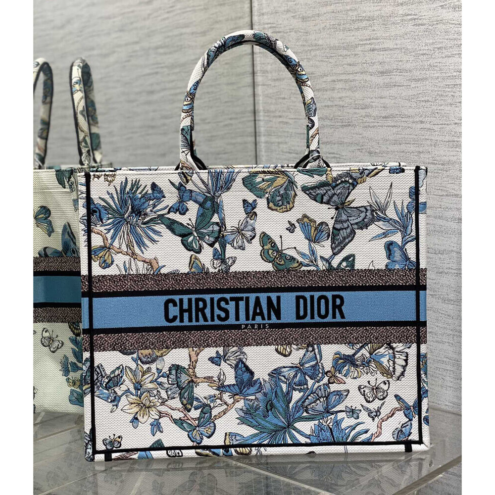Dior Book Tote in Blue Palms Embroidery