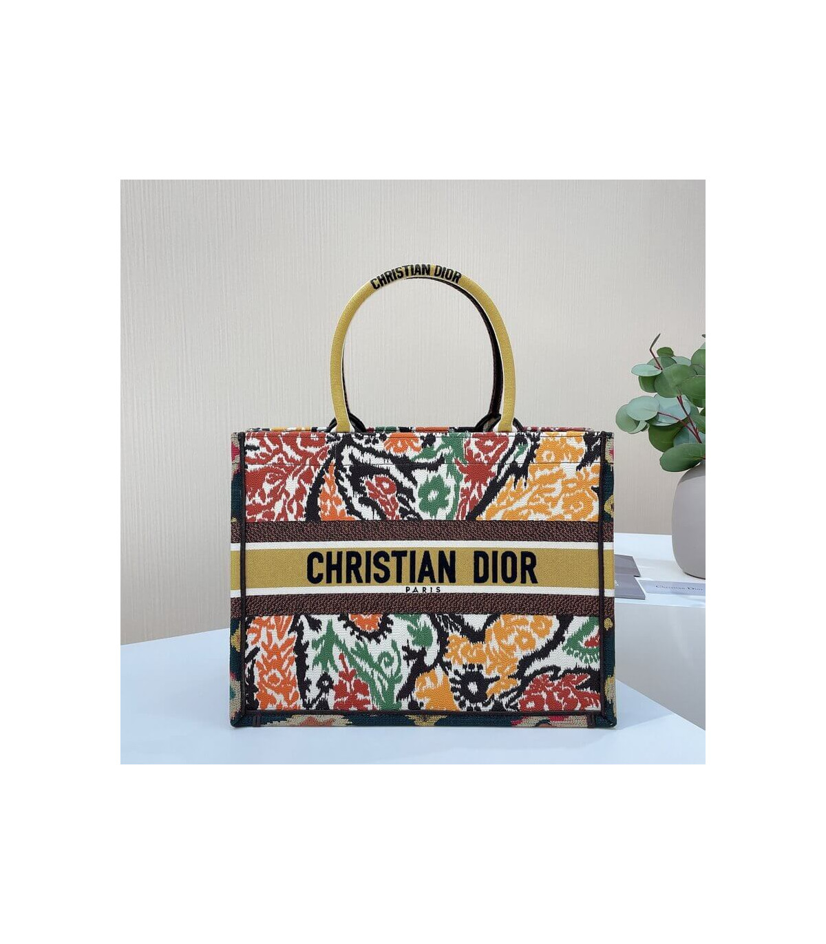 Christian Dior Small Book Tote Yellow Multicolor Dior Paisley Embroidery