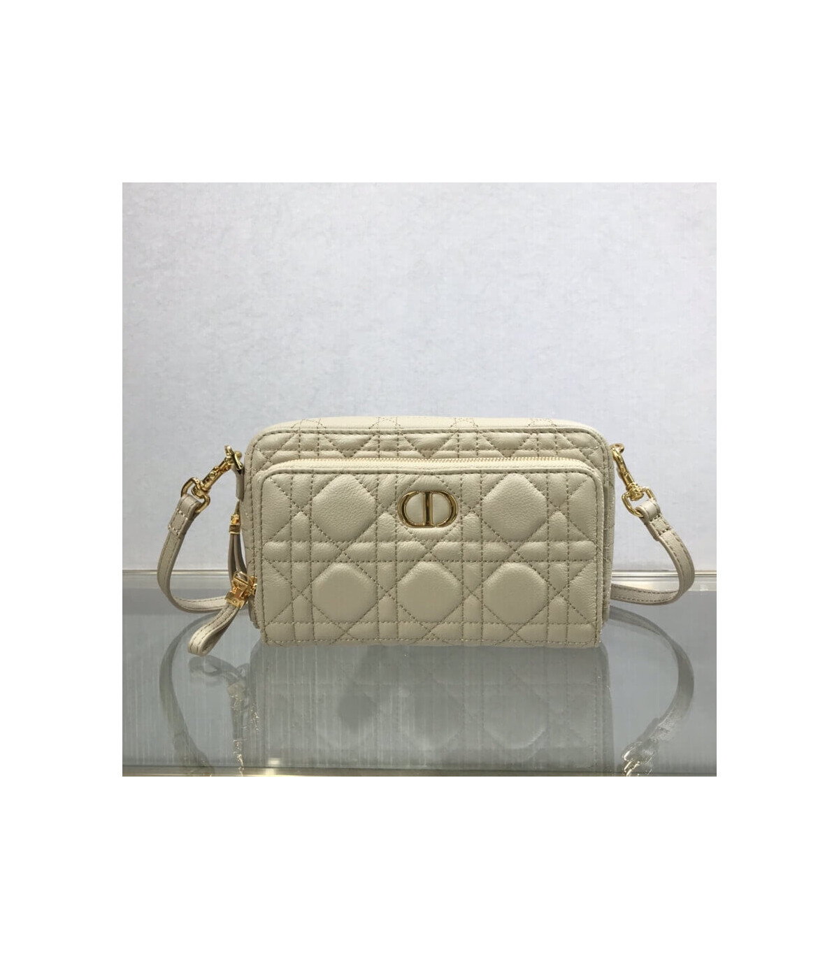 Dior Caro Double Pouch Beige Supple Cannage Calfskin