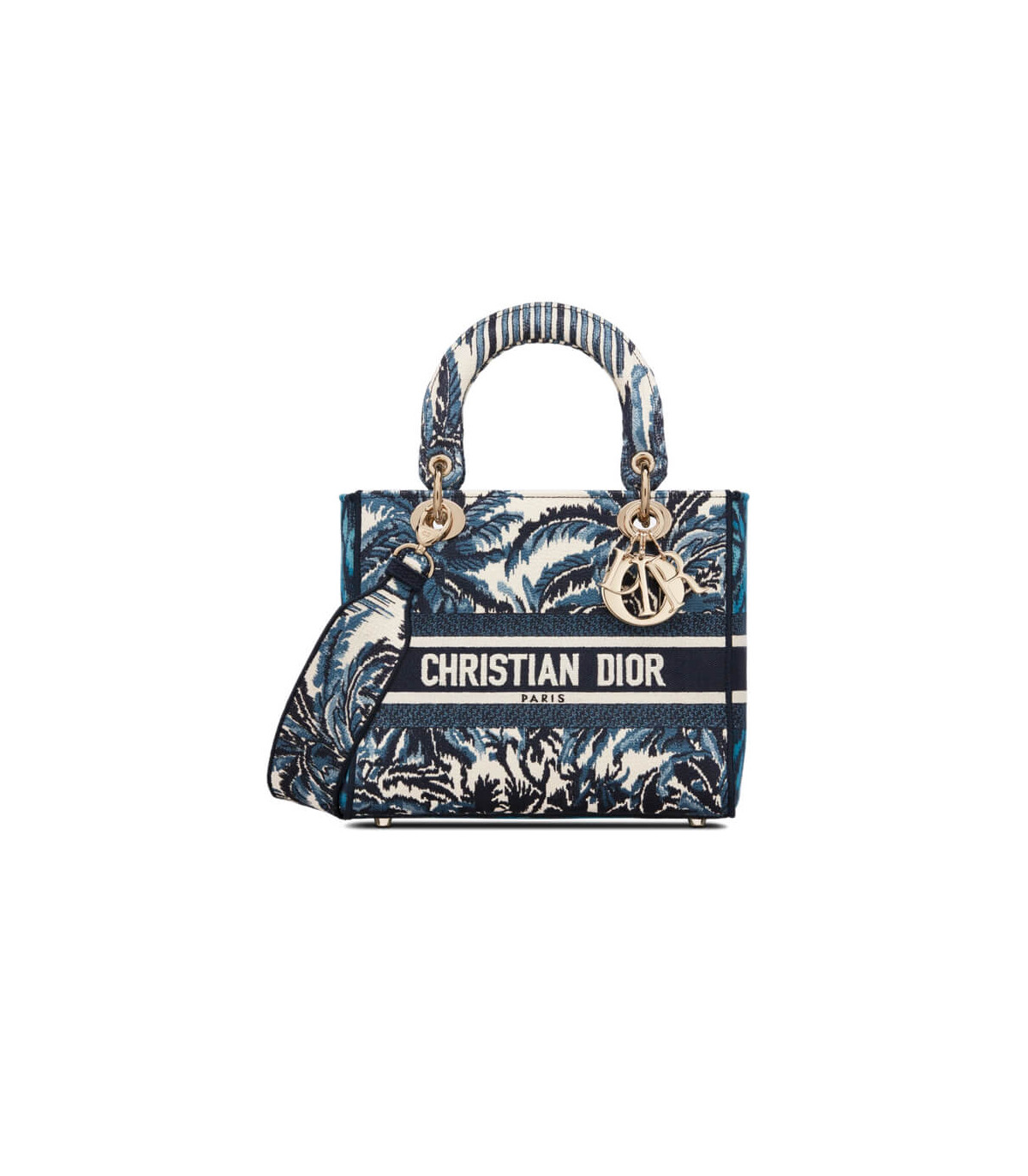 Dior Medium Lady D-Lite Bag Blue Dior Palms Embroidery