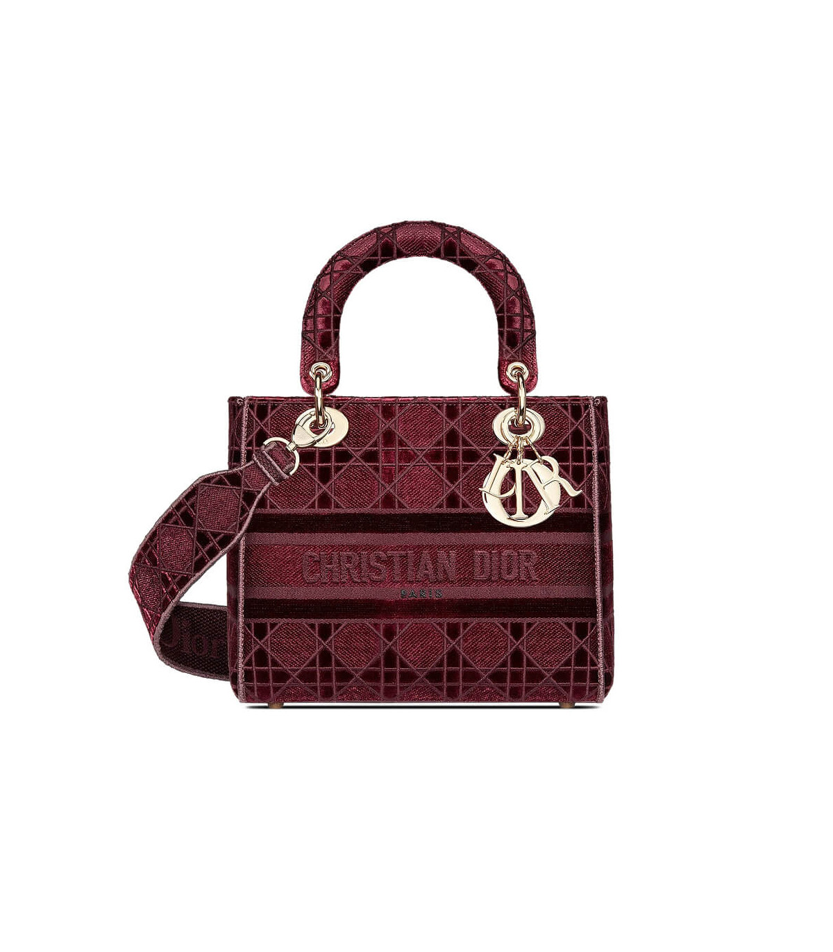 Dior Medium Lady D-Lite Bag Burgundy Cannage Embroidered Velvet
