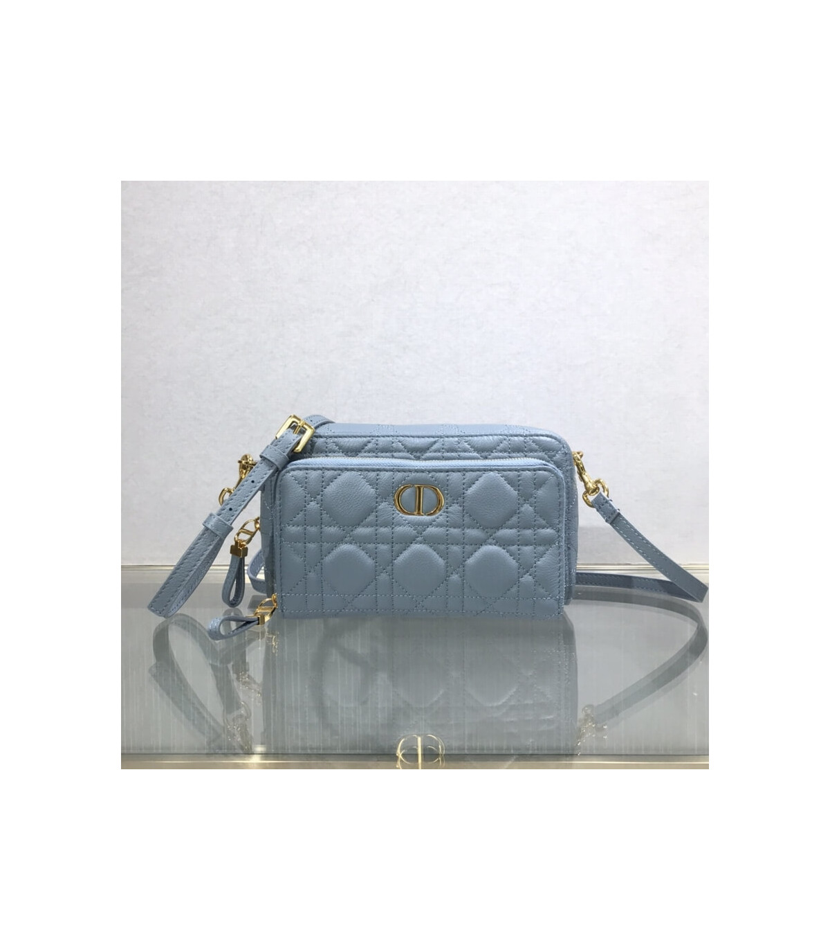 Dior Caro Double Pouch Cloud Blue Supple Cannage Calfskin