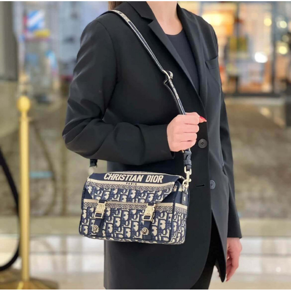 Christian Dior Small DiorCamp Bag Blue Oblique Embroidery