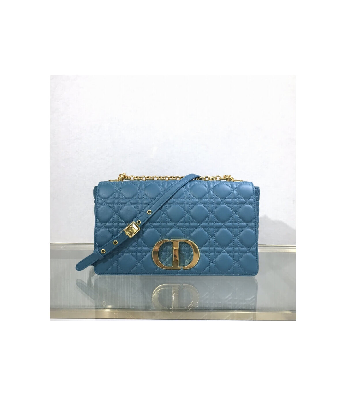 Dior Large Caro Bag Ocean Blue Supple Cannage Calfskin