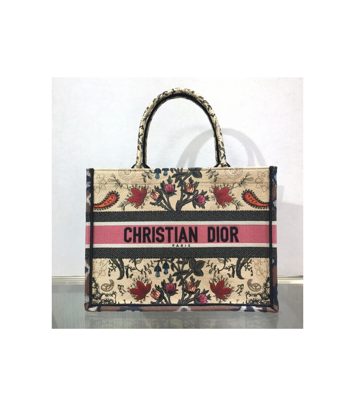 Christian Dior Small Book Tote Broderie Flowers Multicolore