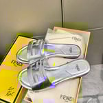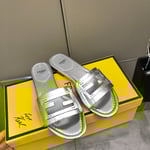 Fendi Baguette Silver Nappa Leather Slides 8R8136Ai16F0Ge7