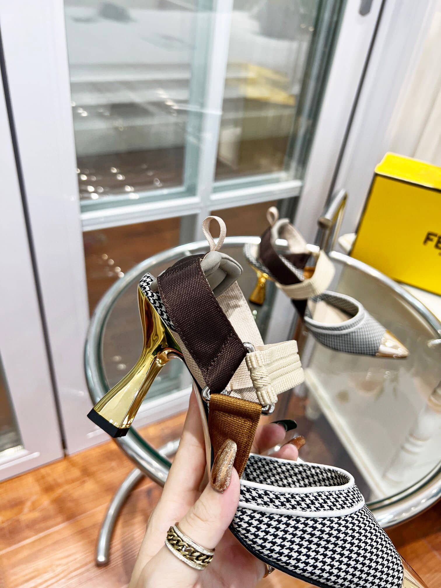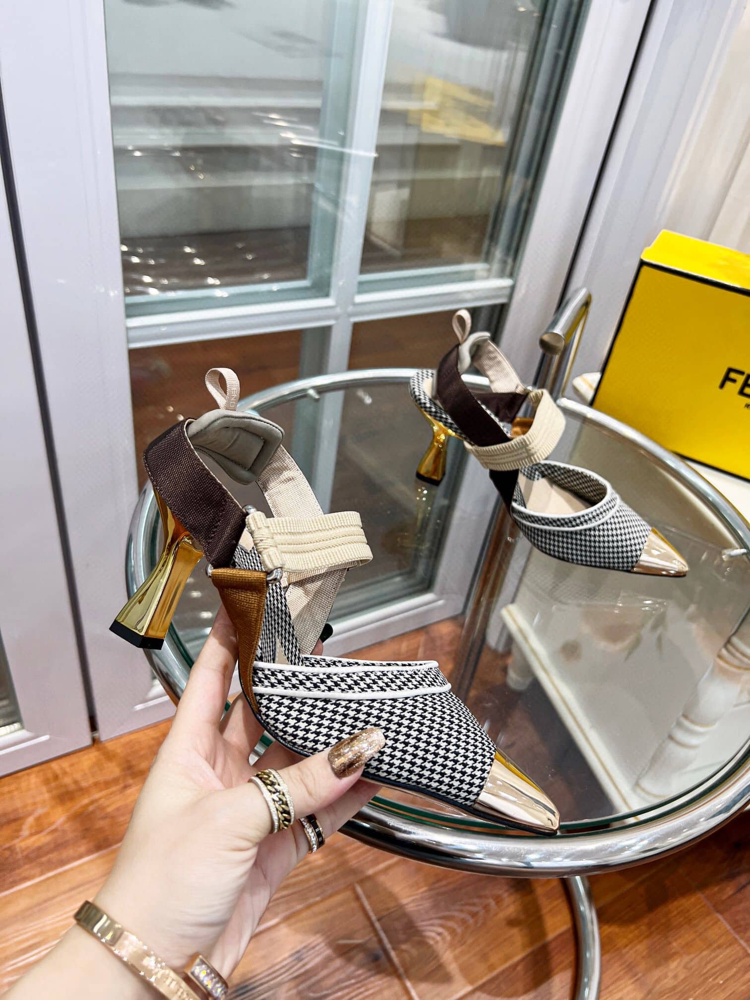 Fendi Colibri 85Mm Beaded Slingback Pumps Gold Black