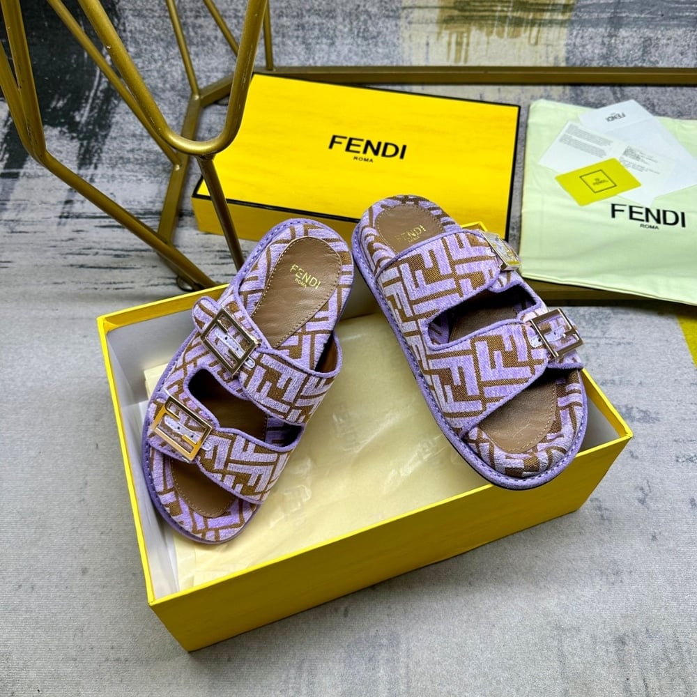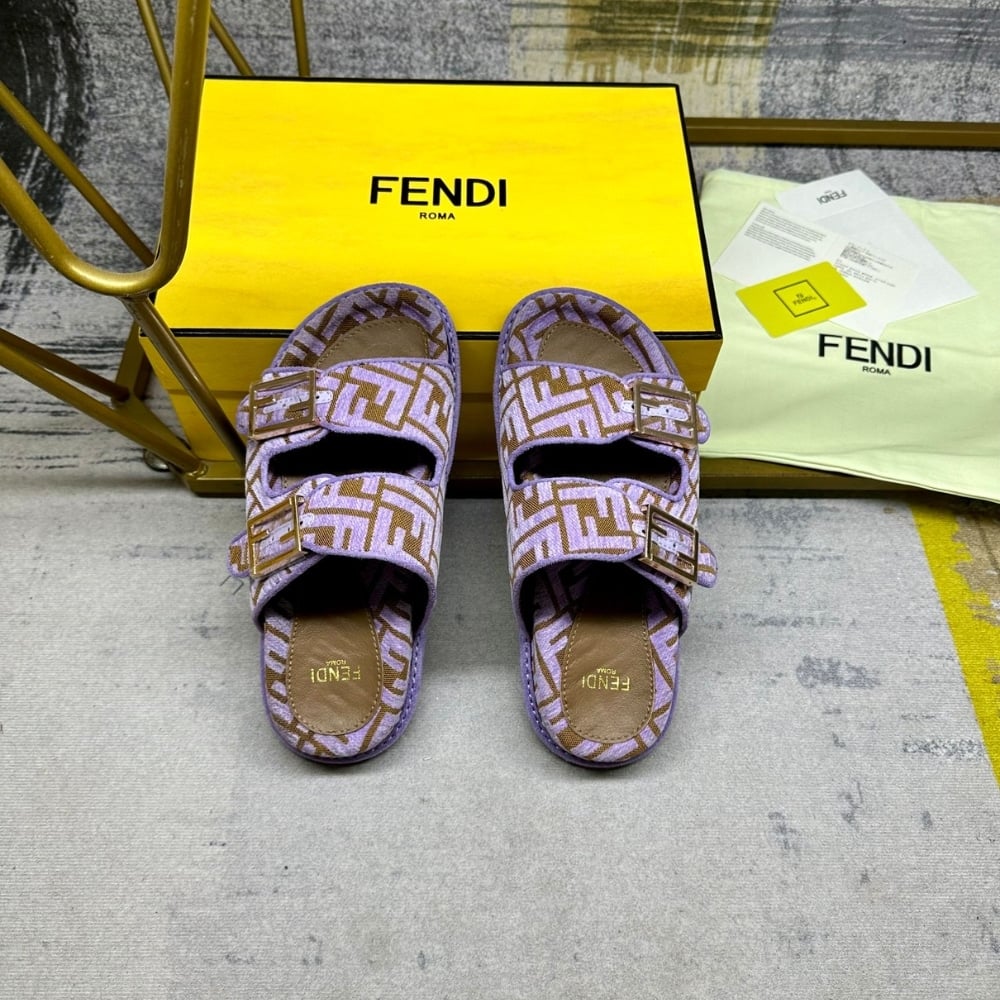 Fendi Feel Ff Jacquard Velvet Slides Amethyst Purple
