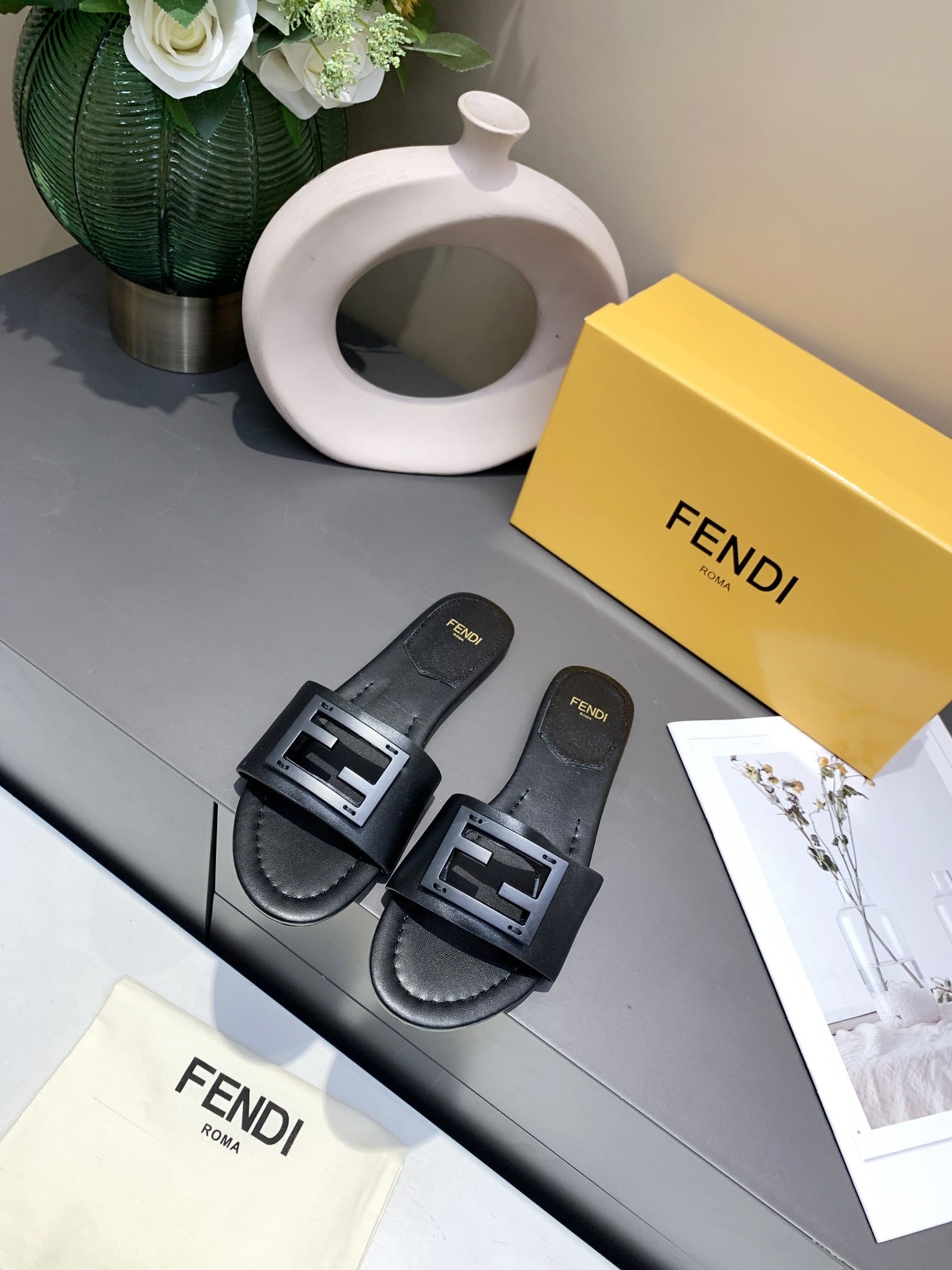 Fendi Signature Leather Sandals Slide Black 0400014271536
