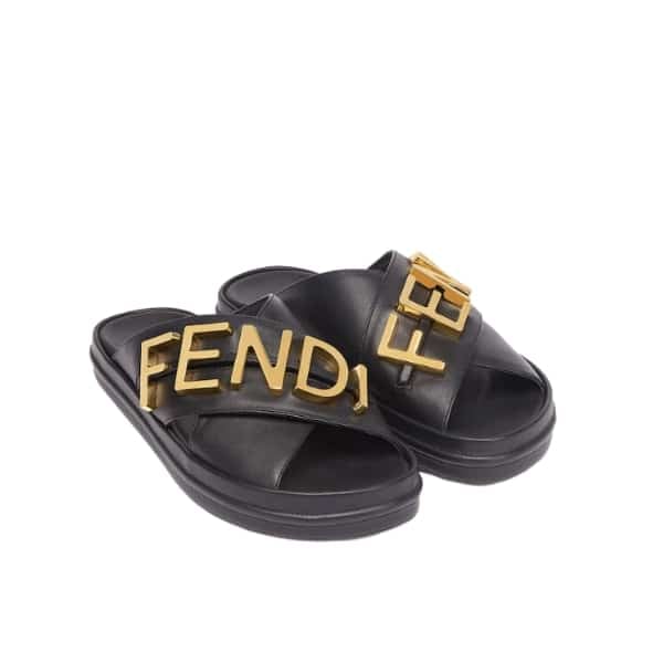 Fendi Fendigraphy Leather Slides Black 8X8289Ai1Rf1H1K
