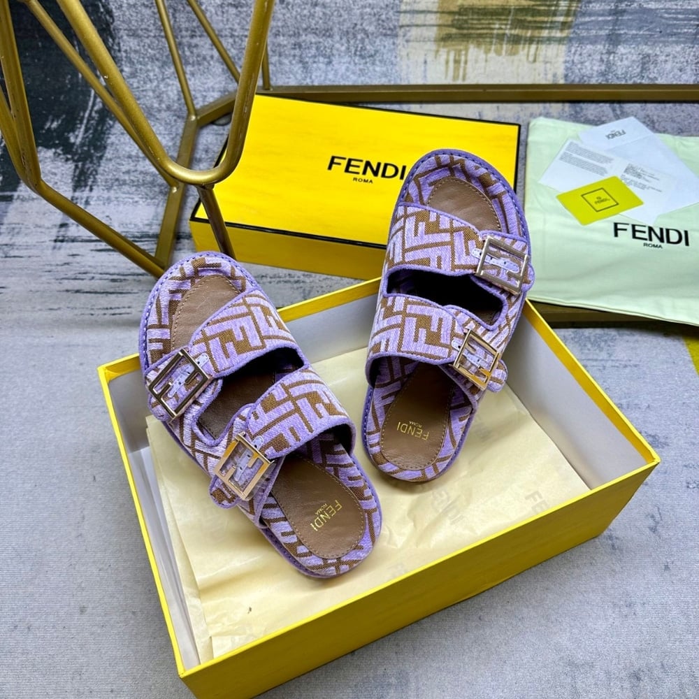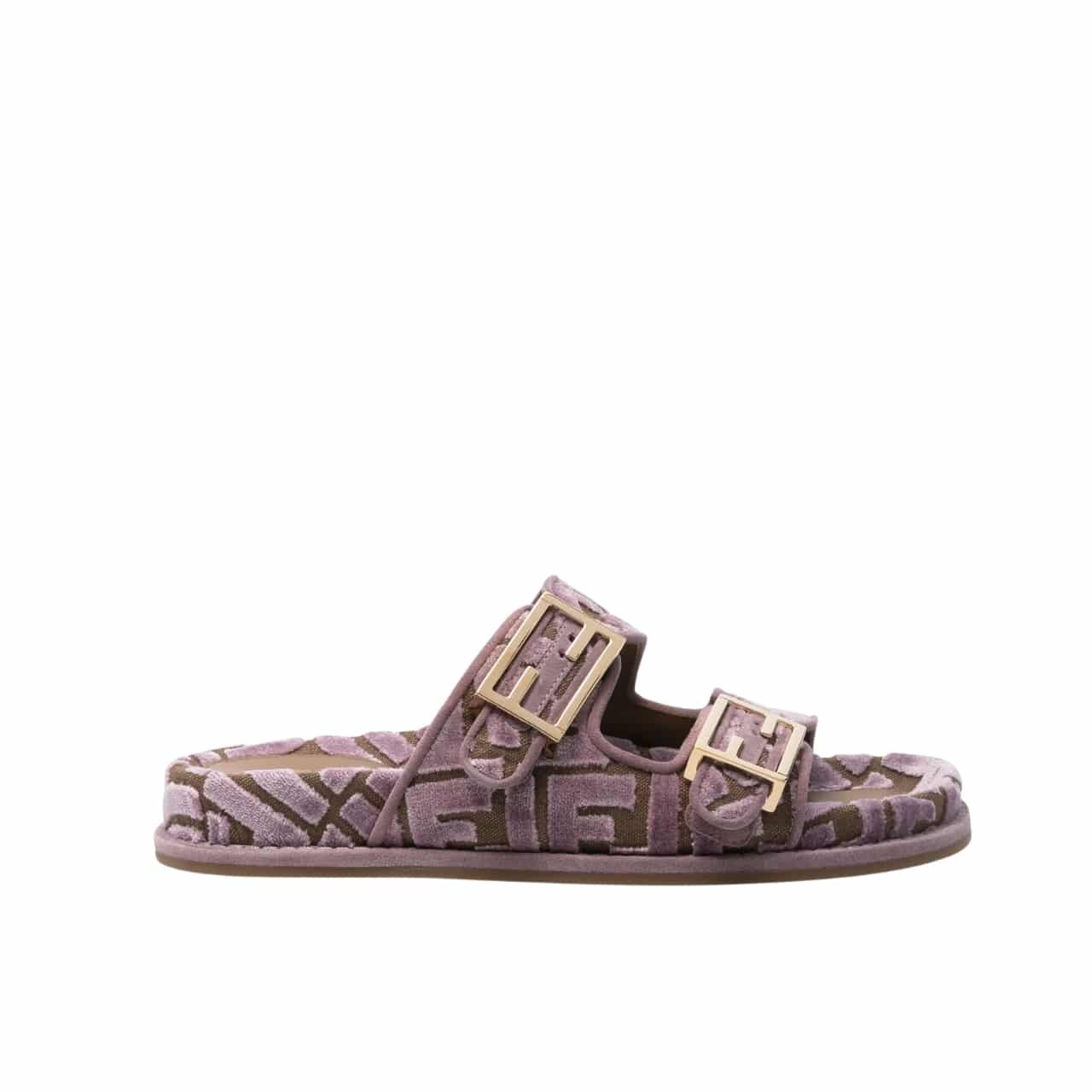 Fendi Feel Ff Jacquard Velvet Slides Amethyst Purple