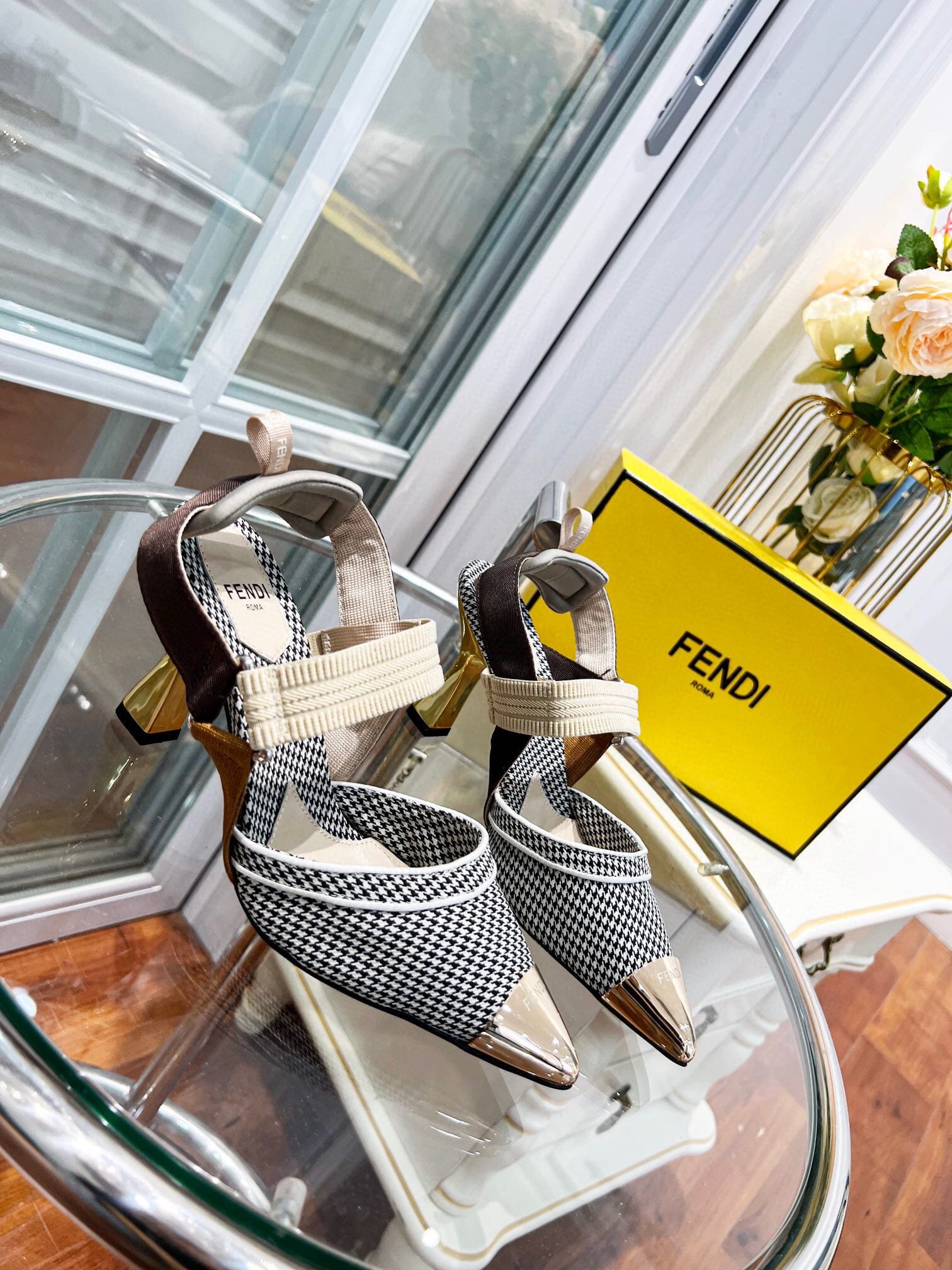Fendi Delfina Ff Jacquard Medium Heeled Sandals Brown 8X8663Ajzff1D1C