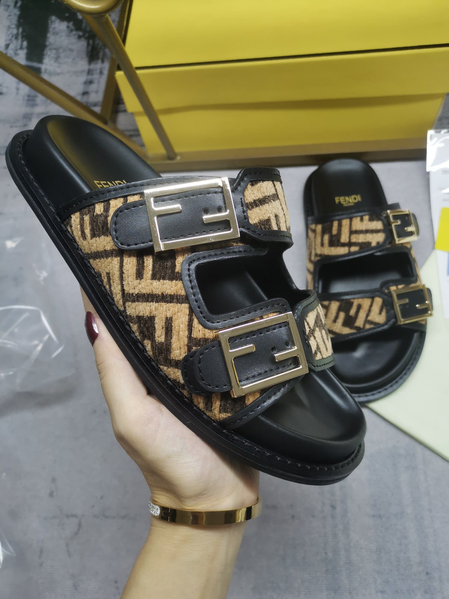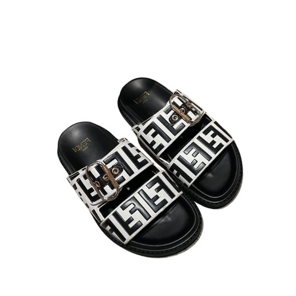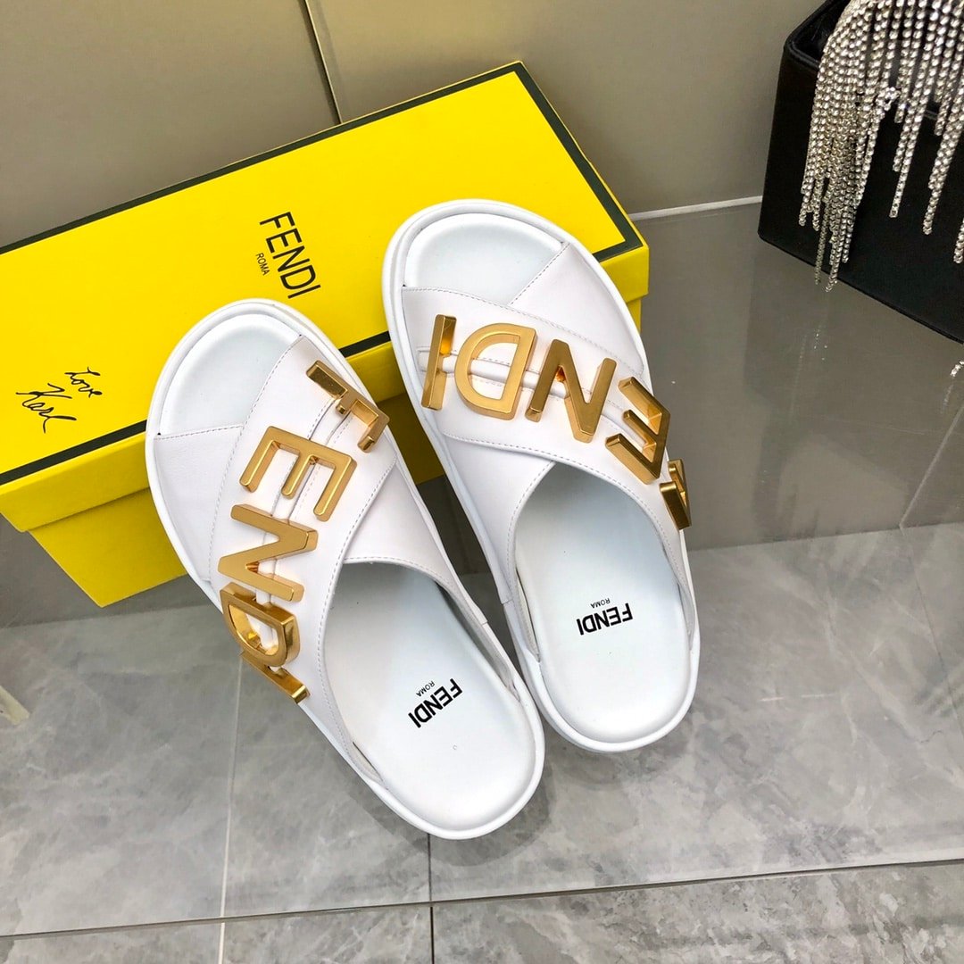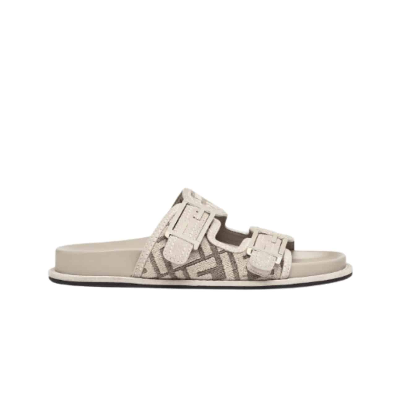 Fendi Feel Slides Unisex Ff Motif Fabric White