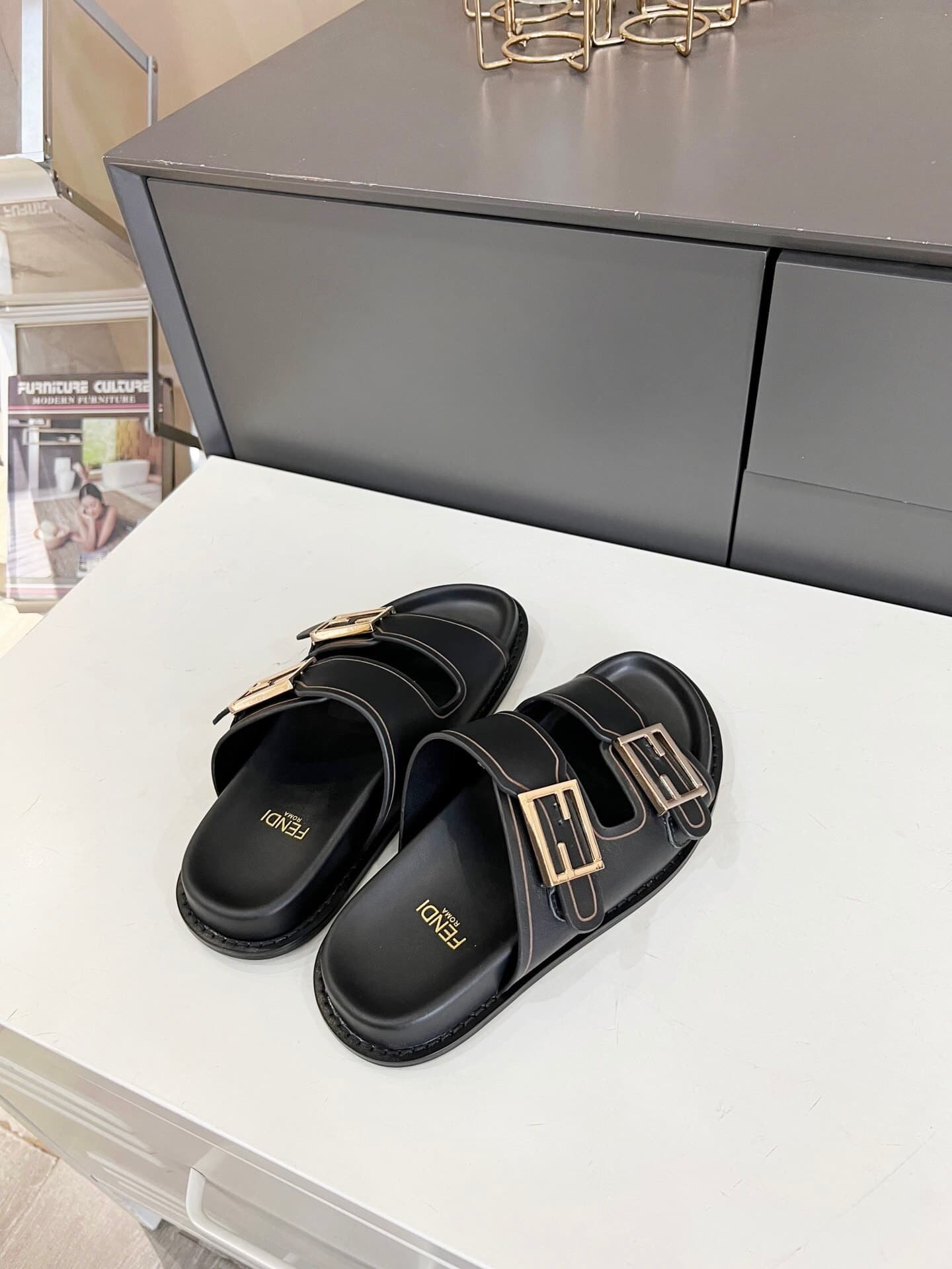 Fendi Feel Leather Slides Black 8X8647Na7F0Qa1