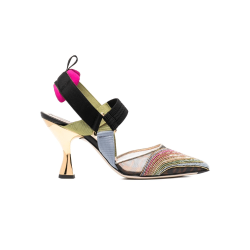 Fendi Colibri 85Mm Beaded Slingback Pumps Rainbow 8J8143Ai1E