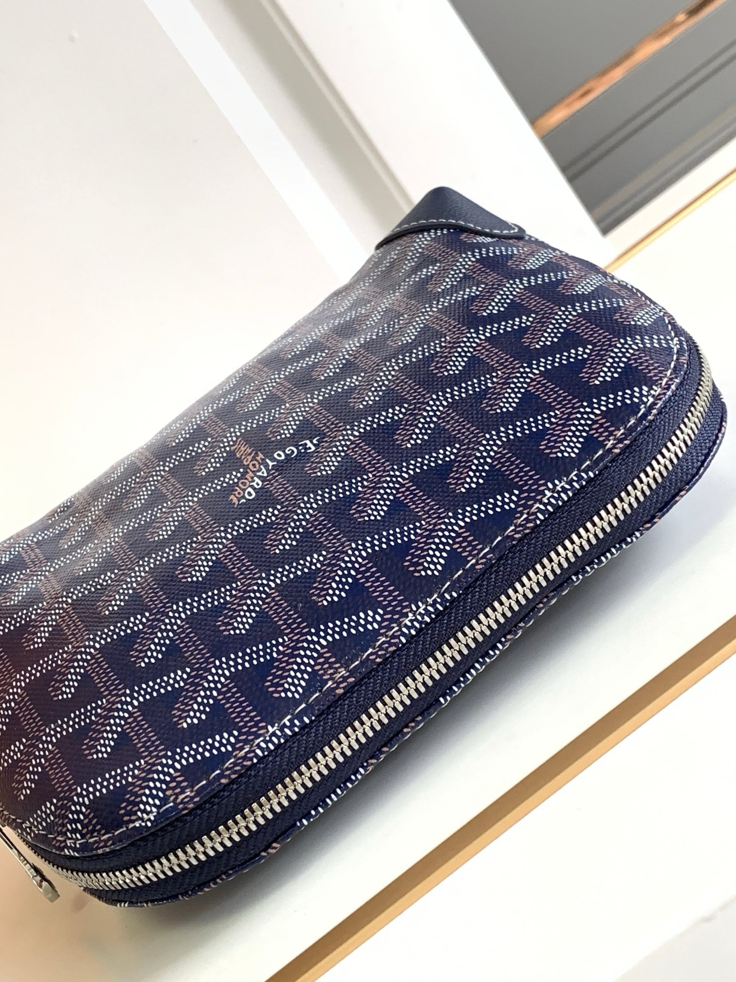 • Goyard Vend?me Cosmetic Pouch 17cm Navy Goyardine Canvas And Calfskin Trim