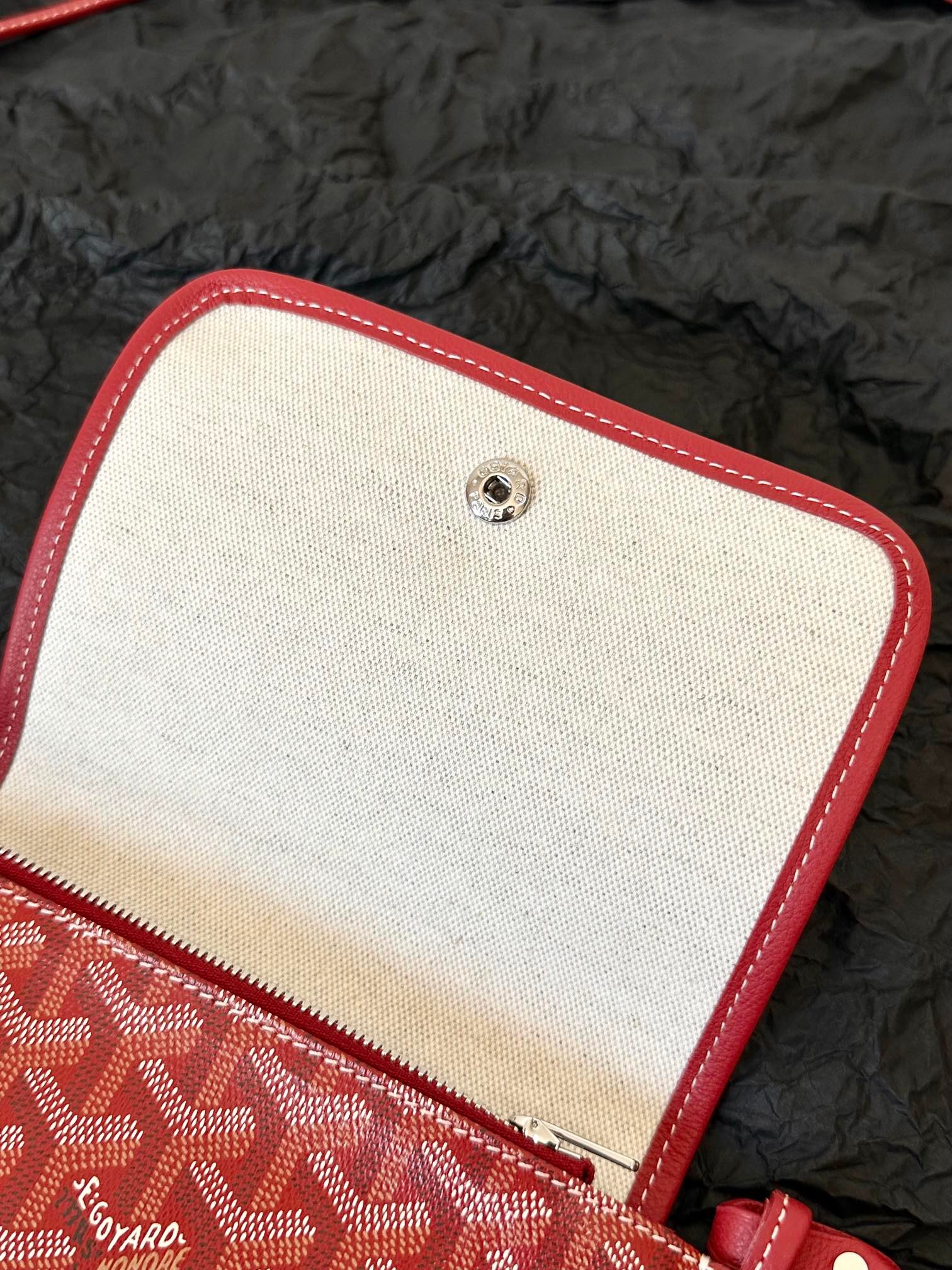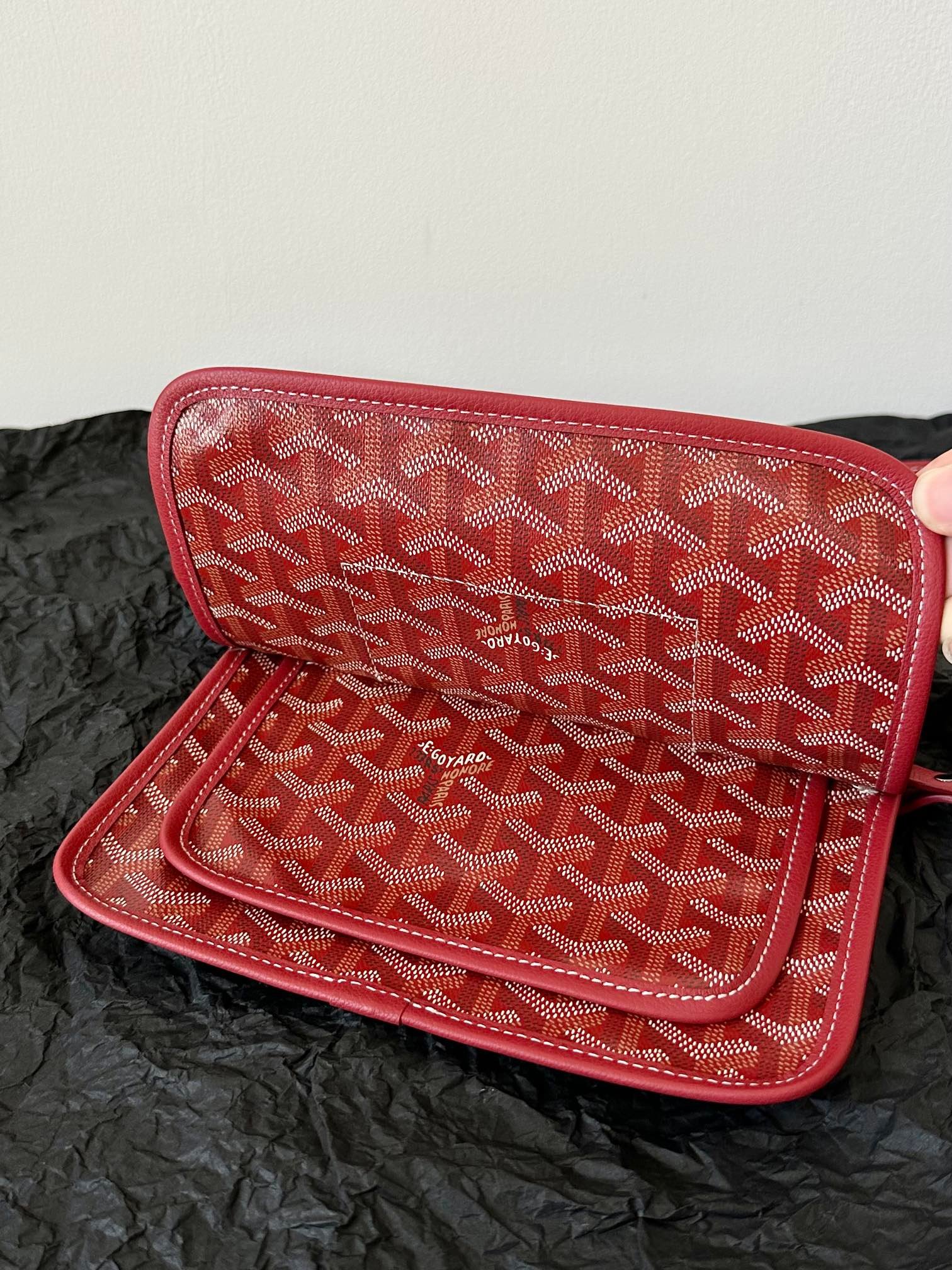 ? Material: Goyardine canvas and lambskin trim