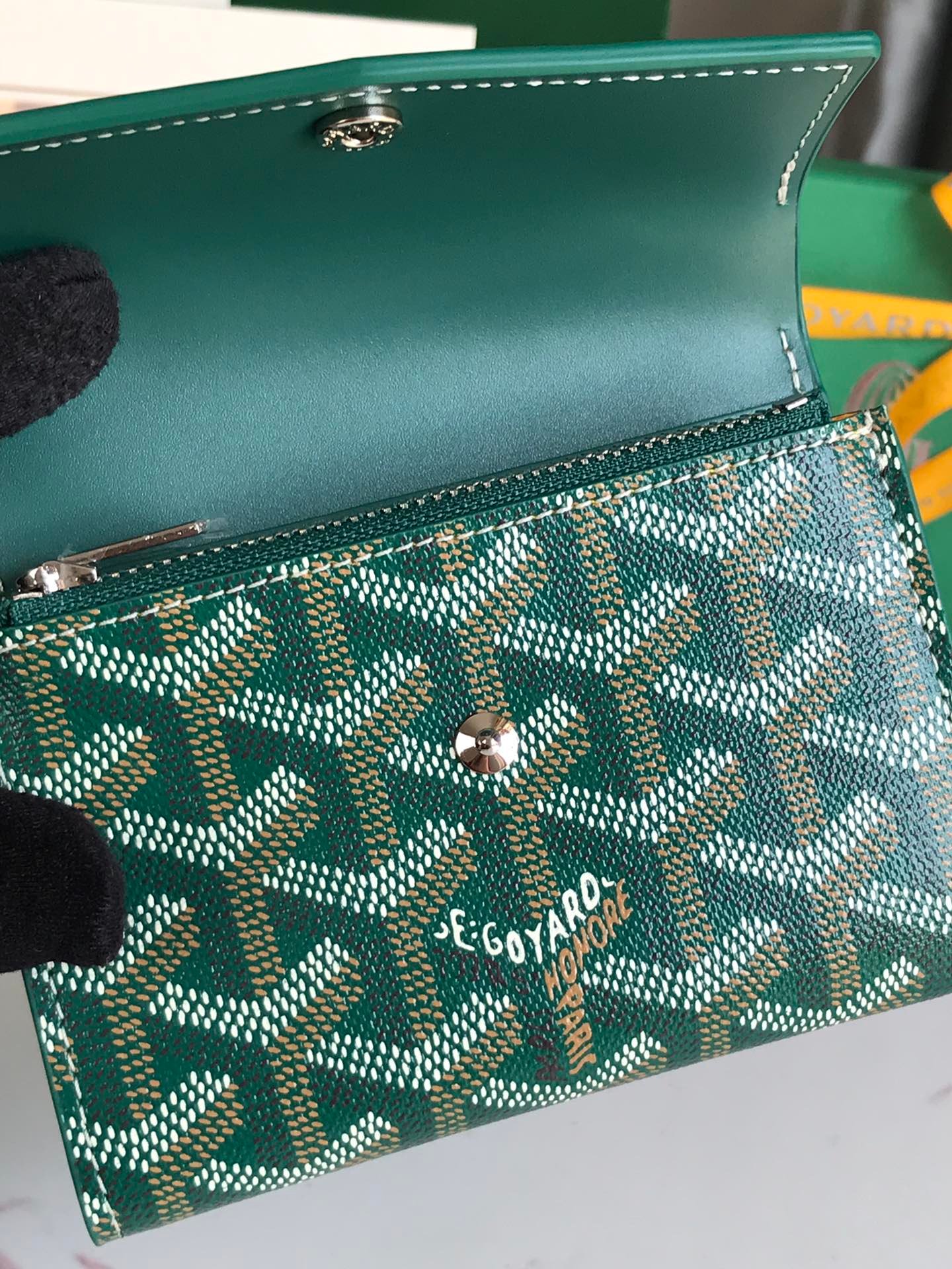 ? Material: Goyardine canvas and calfskin