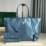 Goyard Saint Louis Pm Bag 34Cm Deep Blue Canvas Chevroches Calfskin
