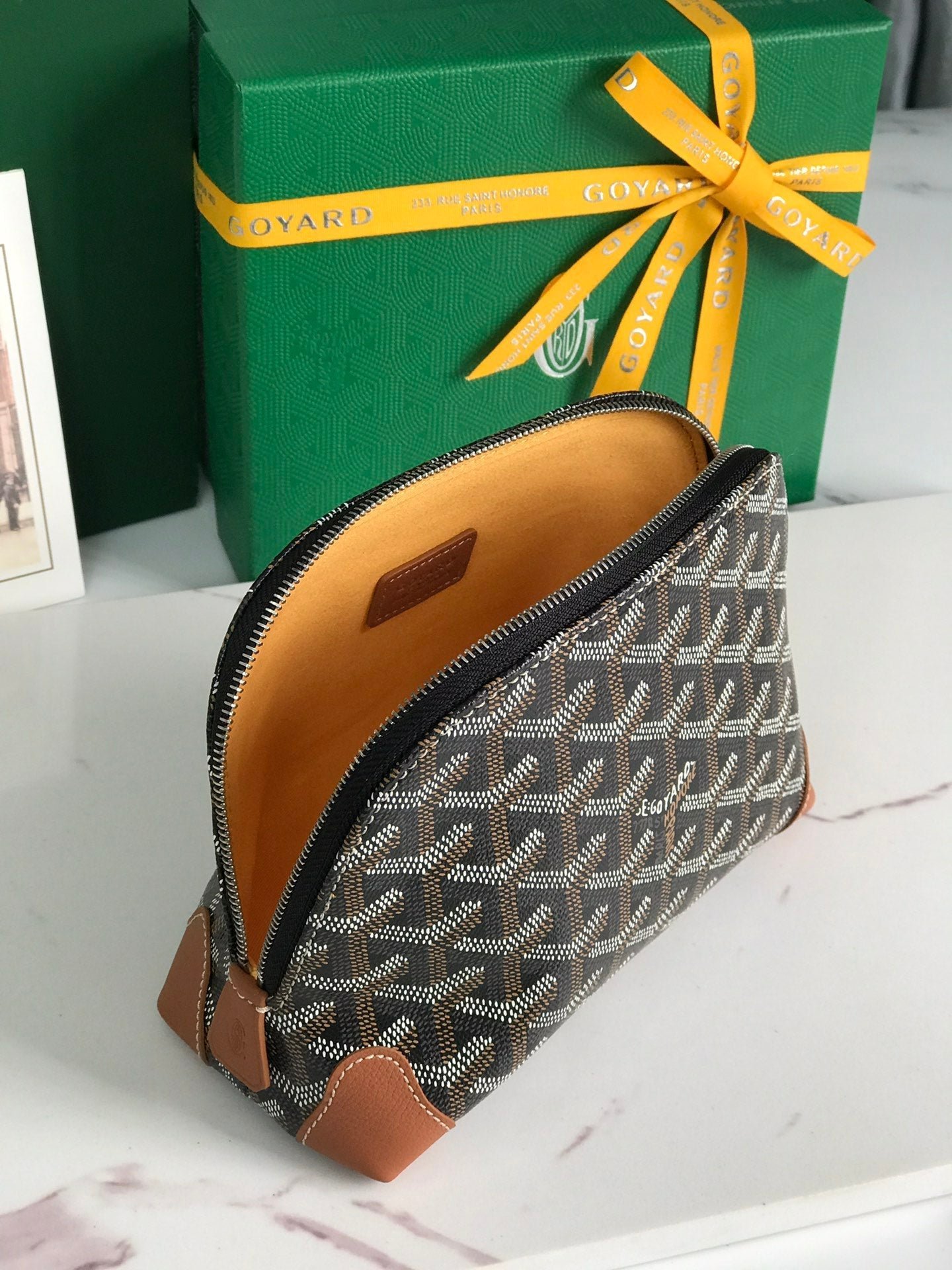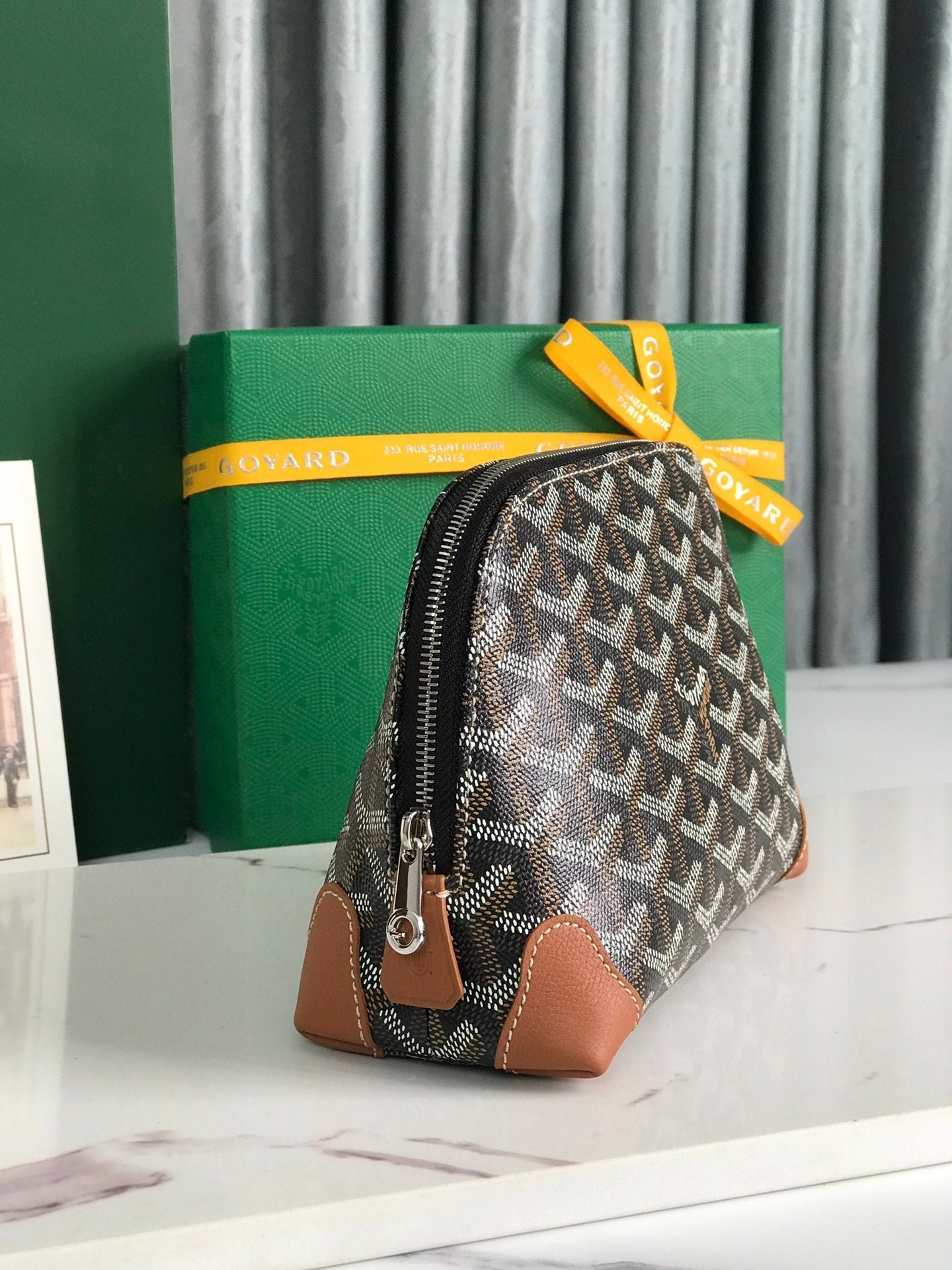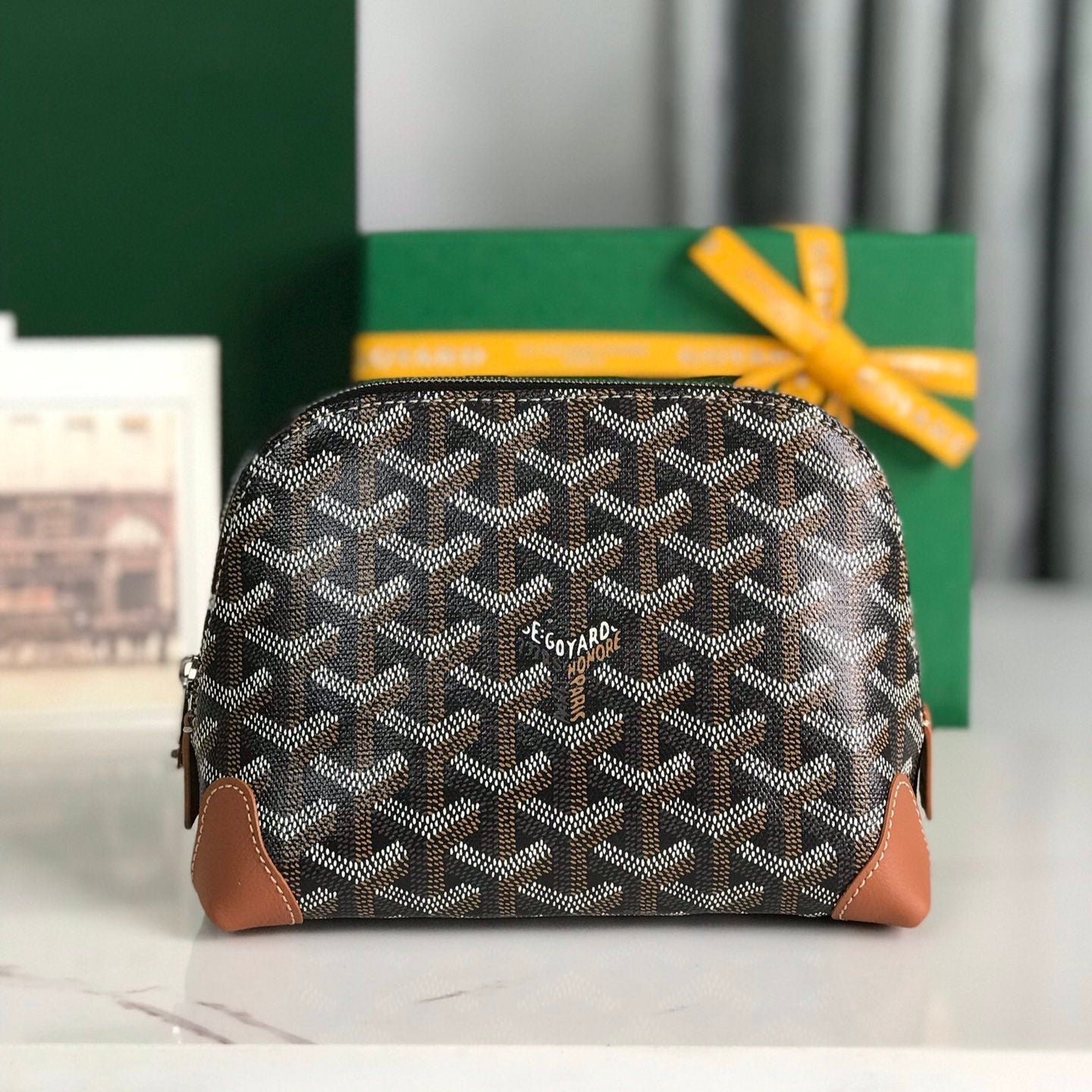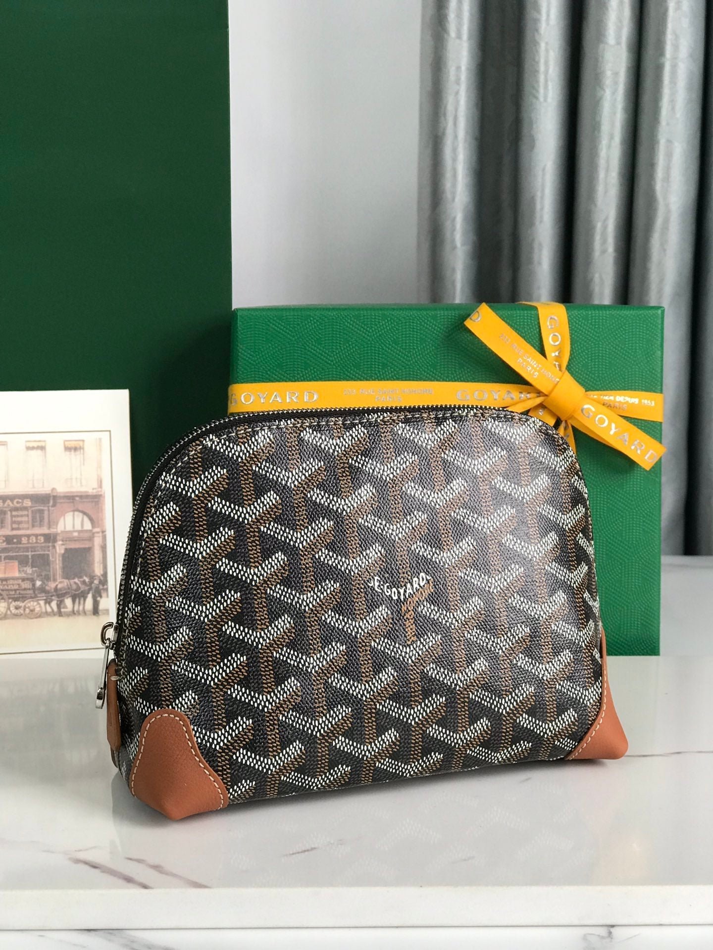 ? Material: Goyardine canvas and calfskin trim