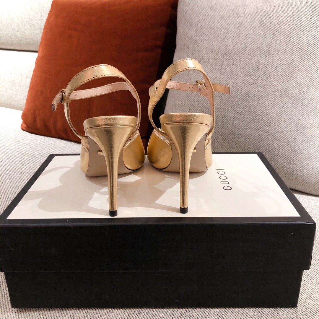 Gucci Ankle Buckle Strap Sylvie Chain Sandals In Gold