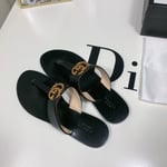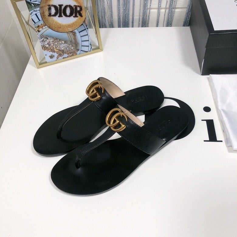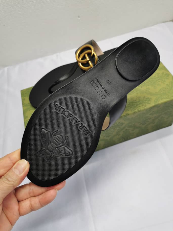 Gucci Double G Thong Leather Black ?497444 A3N00 1000