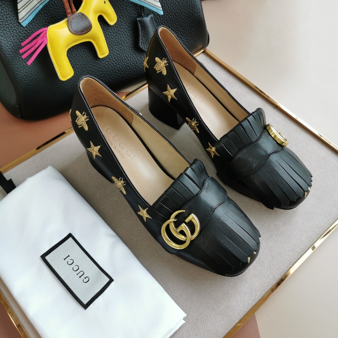 Gucci Embroidered Bee Star Leather Mid-Heel Pump Black