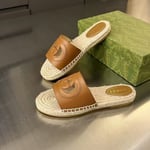 Gucci Interlocking G Cut Out Slide Espadrille Brown 725260 Us000 2535