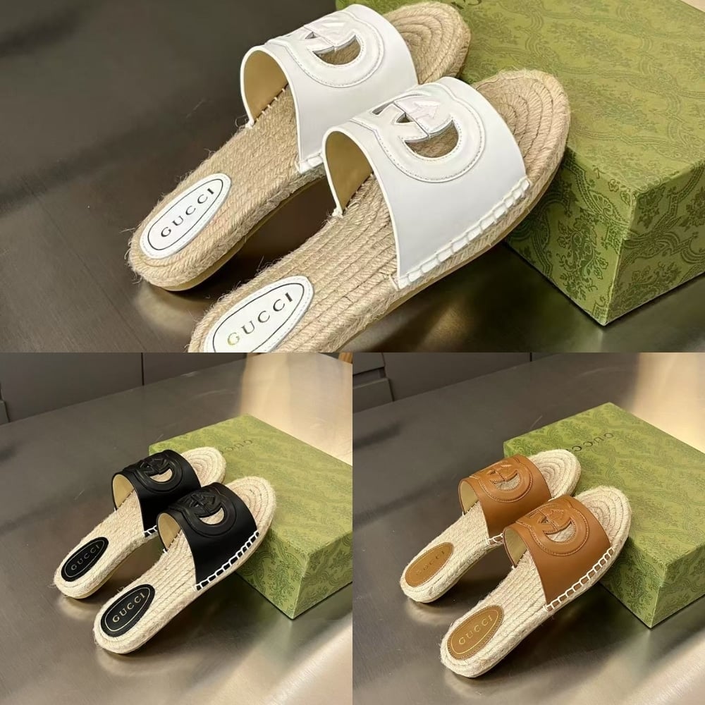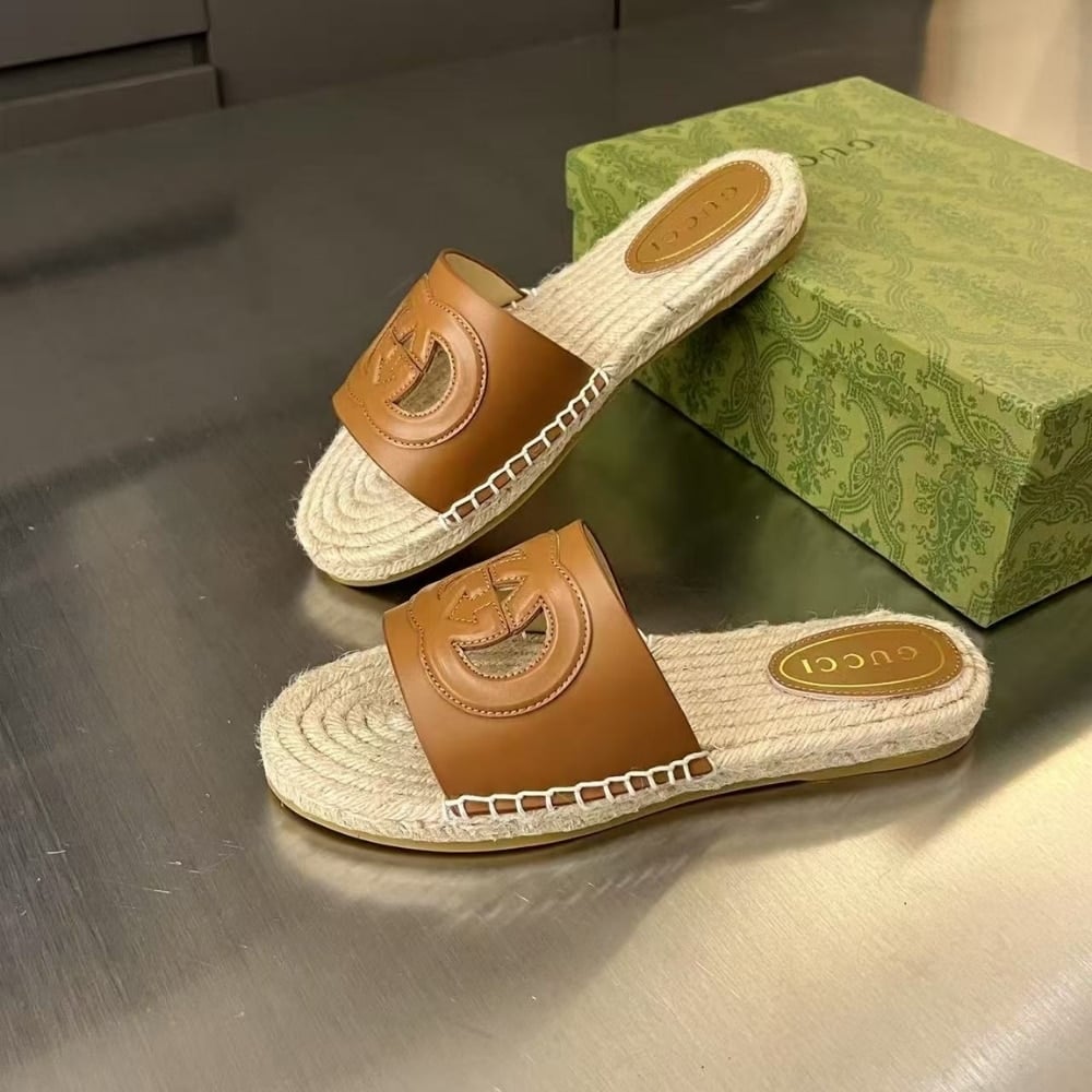 • Gucci Interlocking G Cut Out Slide Espadrille Brown 725260 Us000 2535