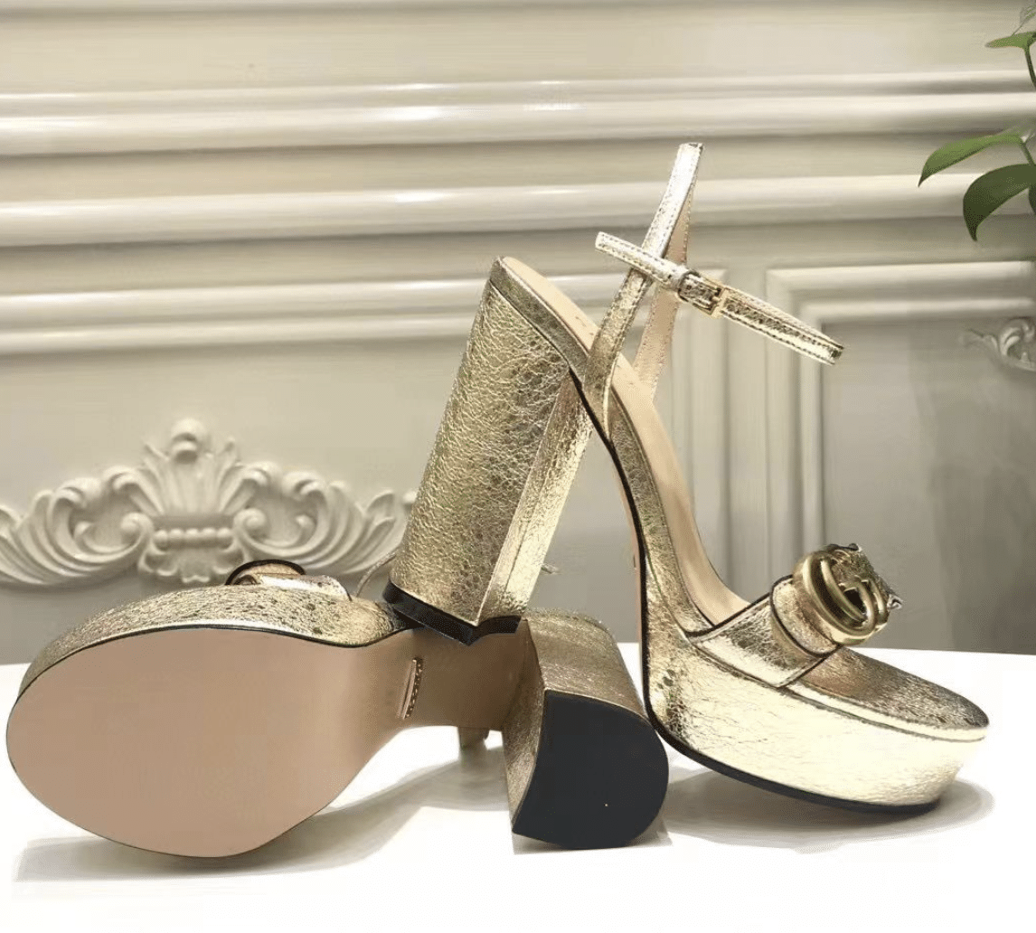 Gucci Marmont Platform Sandal Gold Color