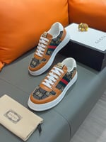 Gucci Screener Gg High Top Sneaker Leather With Orange