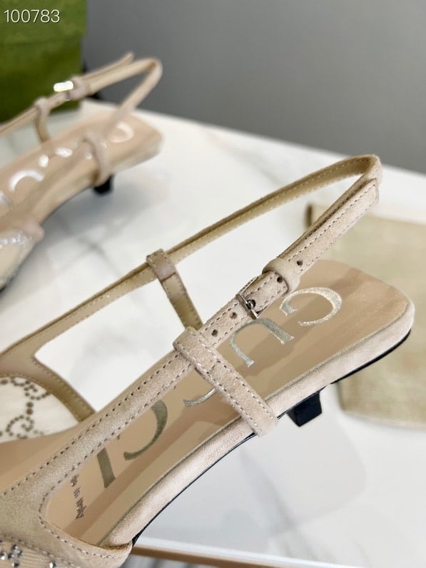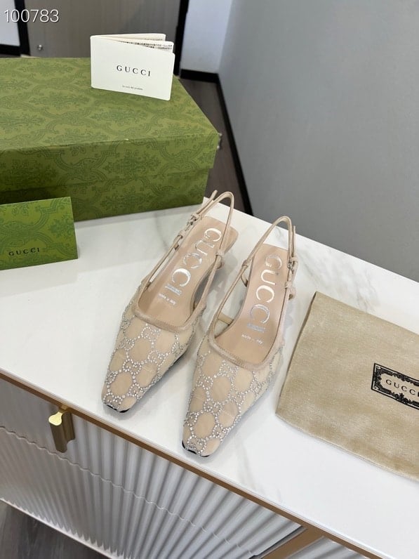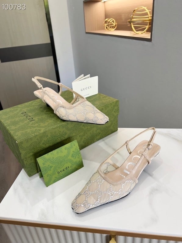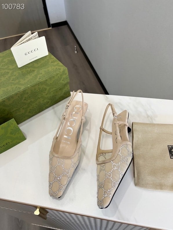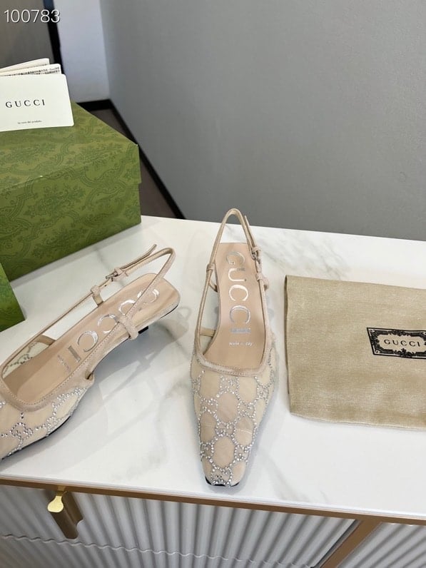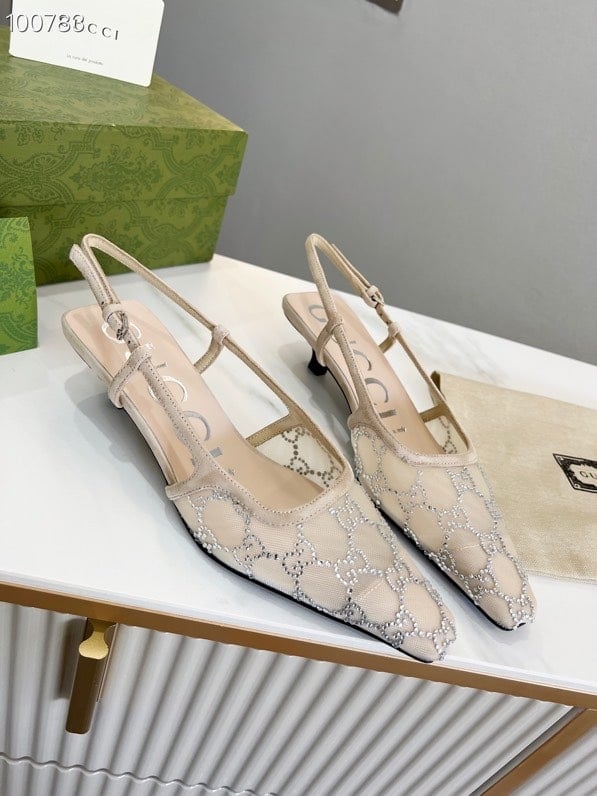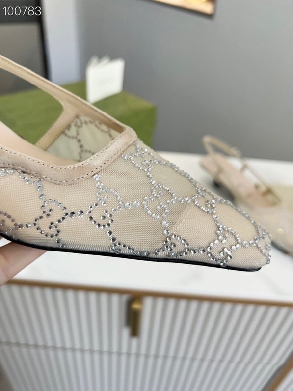 Gucci Slingback Pumps with Decorative Gems �C Black Mesh Pointed Toe Heels