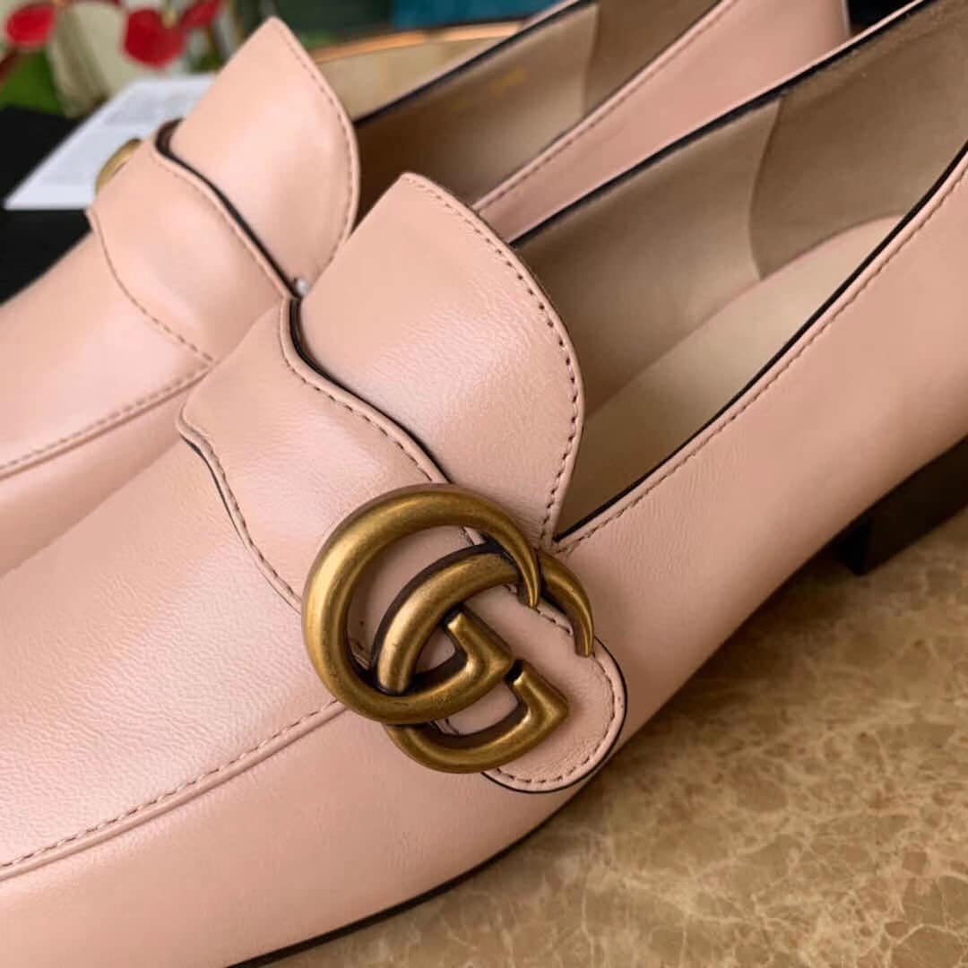 • Gucci Wmns Leather Loafers Moccasins Double G Pink 602496 C9D00 5909