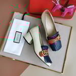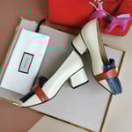 Gucci Wmns White And Blue Leather Mid-Heel Pump