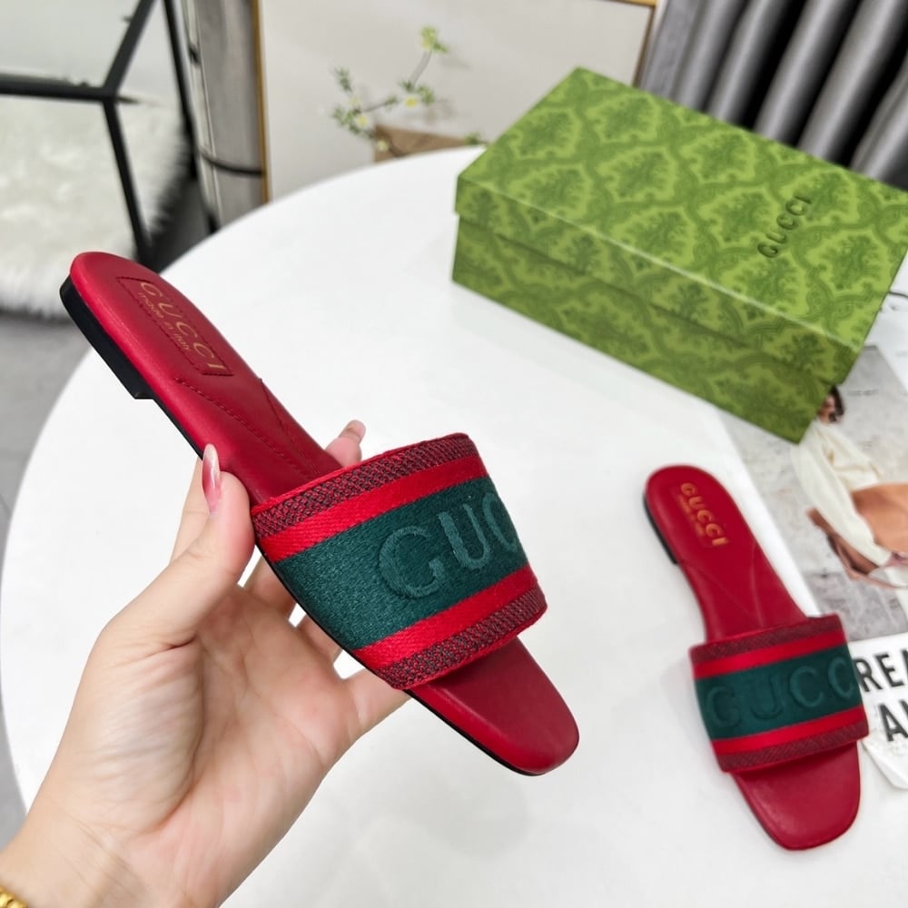 Gucci Women Slide Sandal With Web Green And Red 816350 Faecg 6443