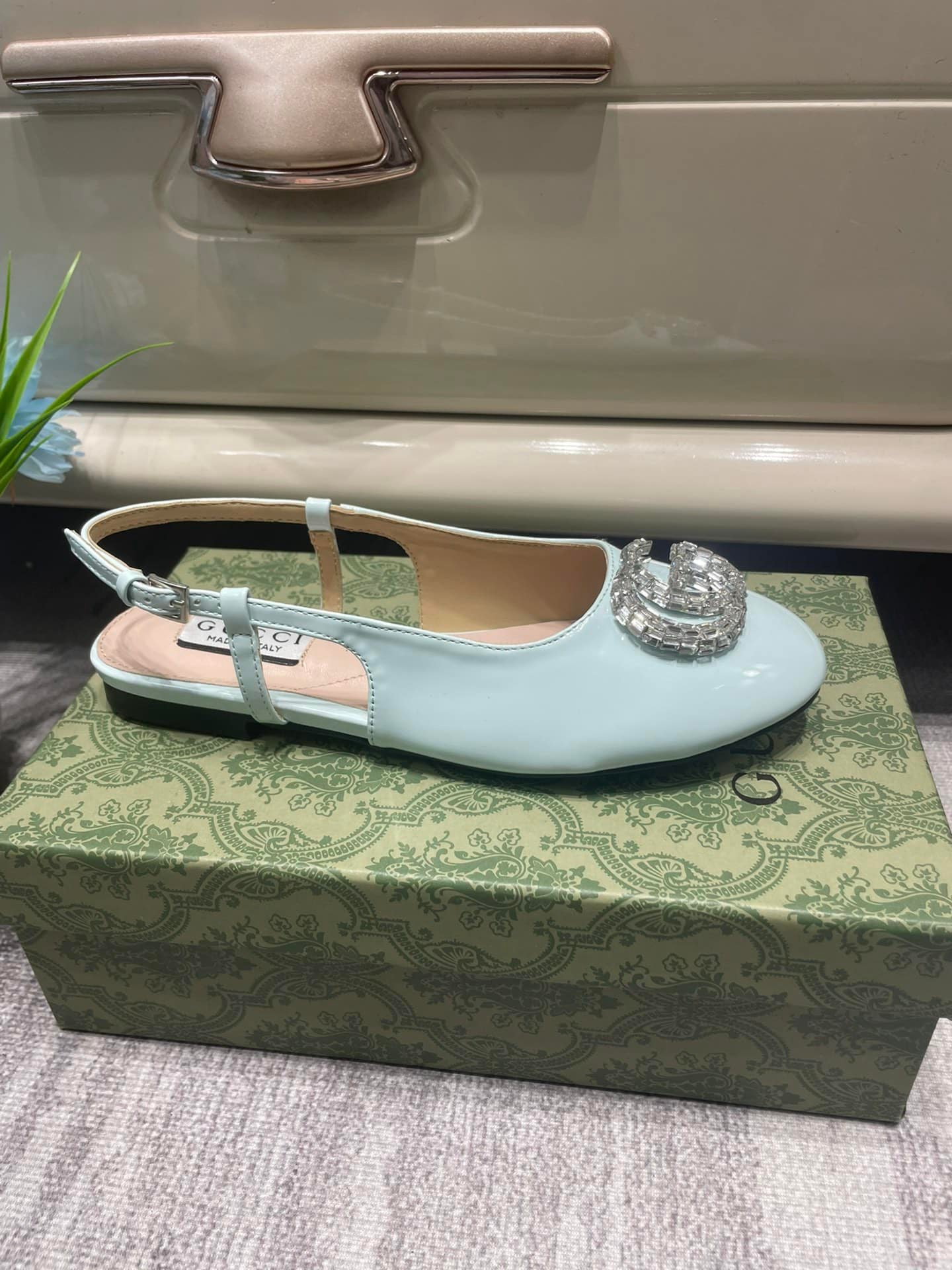 • Gucci Women’S Ballerina With Double G Pale Green 762765 Bnc00 3401
