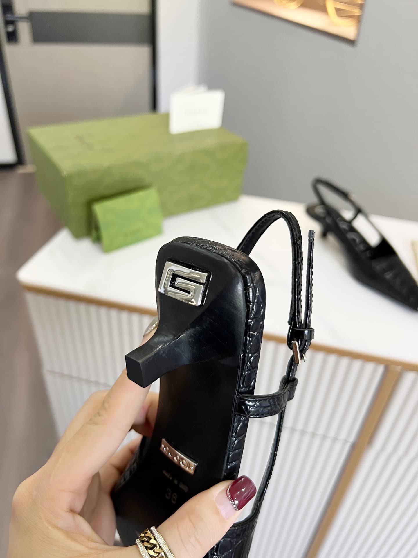 Gucci Women?S Crocodile Print Pump Black 674666 Ukq00 1000